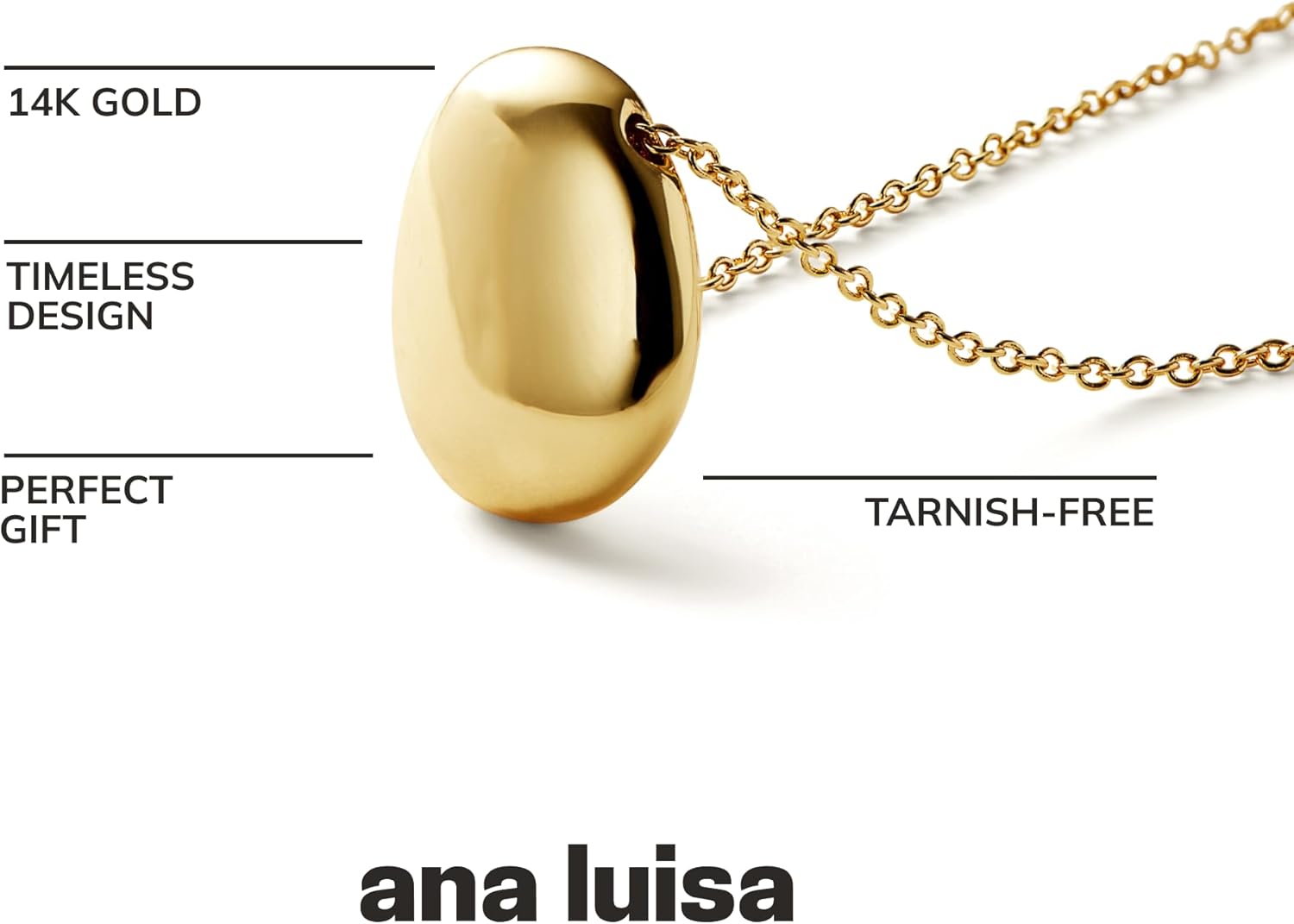 Ana Luisa Pebble Pendant Necklace for Women – 14K Gold Plated and Silver Rhodium Plated Trendy Small & Mini Teardrop Necklace with Lobster Clasp – Hypoallergenic, Water-Resistant, Tarnish-Free Jewelry