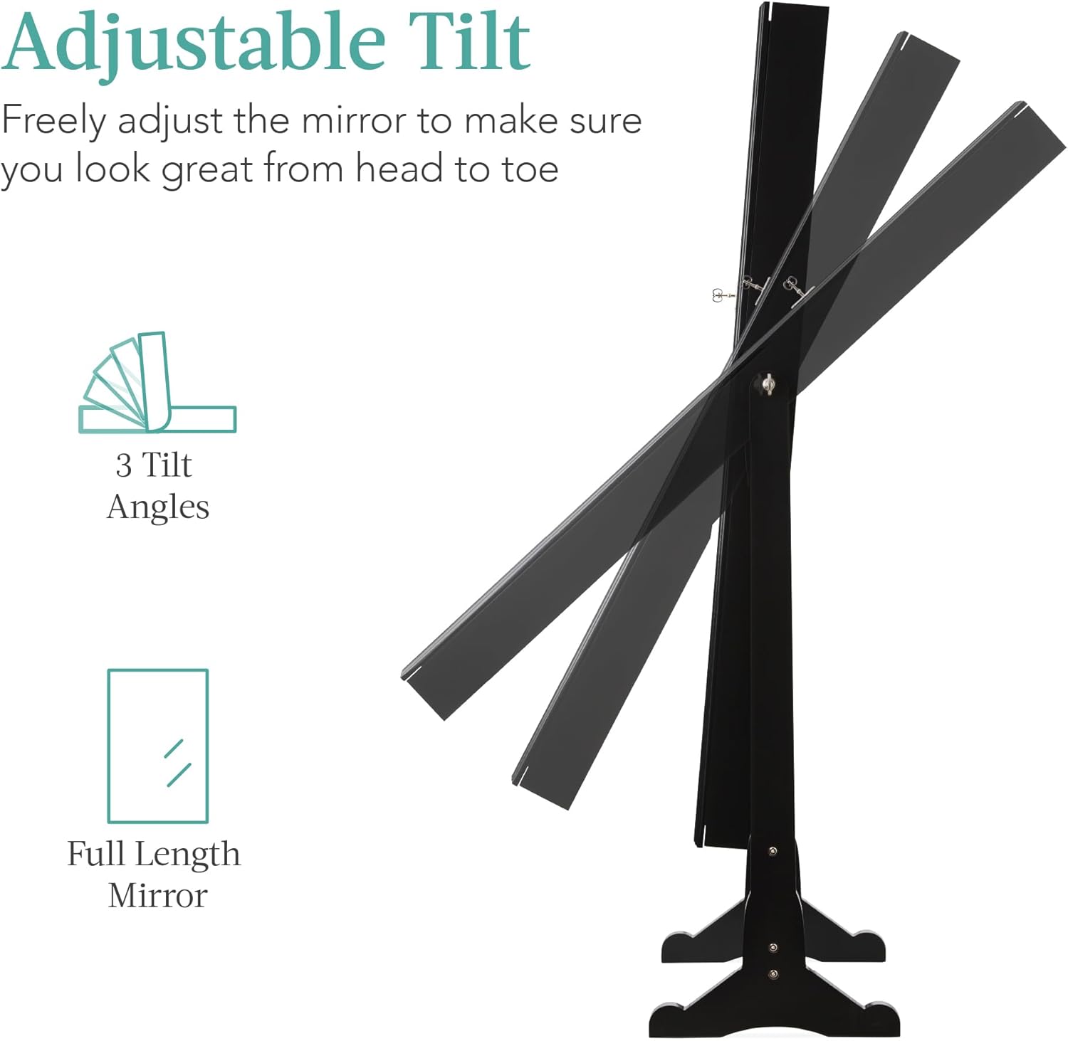 ADJUSTABLE TILT: A set of pegs and fastener holes on the legs let you adjust the angle of this mirror to 3 different positions to achieve the best head-to-toe view of your outfit