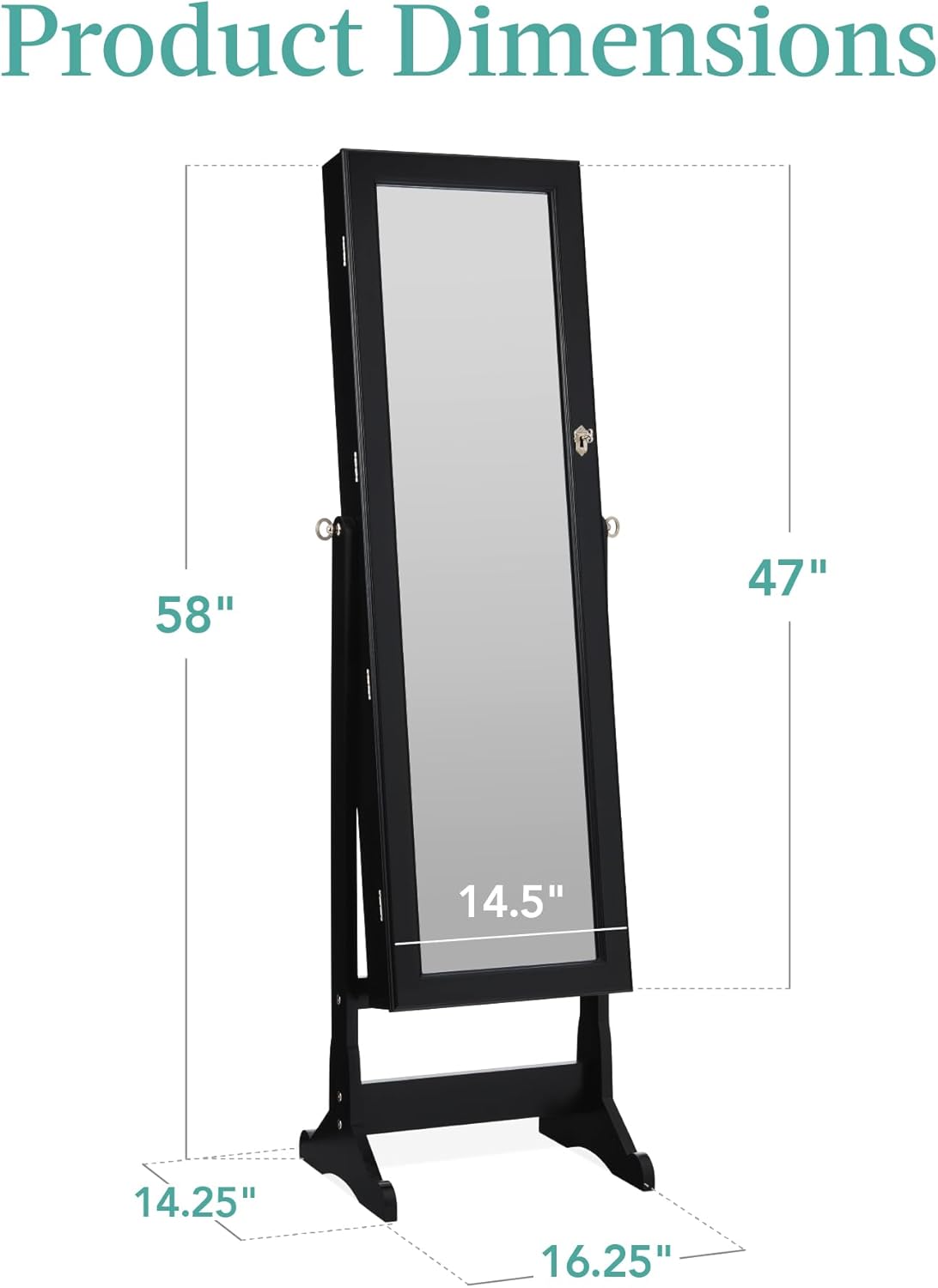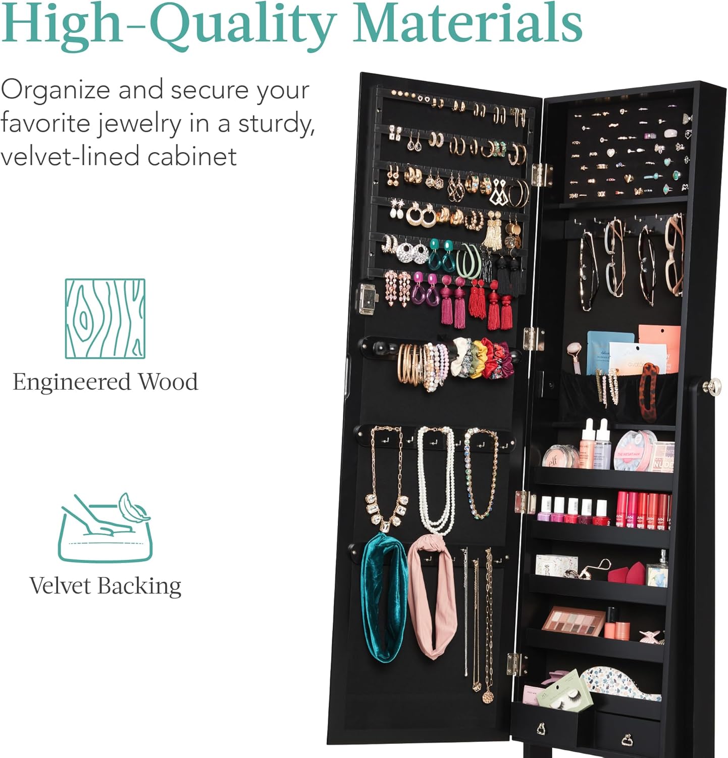 Best Choice Products Freestanding Jewelry Armoire Cabinet, Full Length Standing Mirror, Lockable Makeup Storage Organizer, w/Velvet Lining, 3 Angles, Lock, Accessory Pouch, 5 Shelves – Black