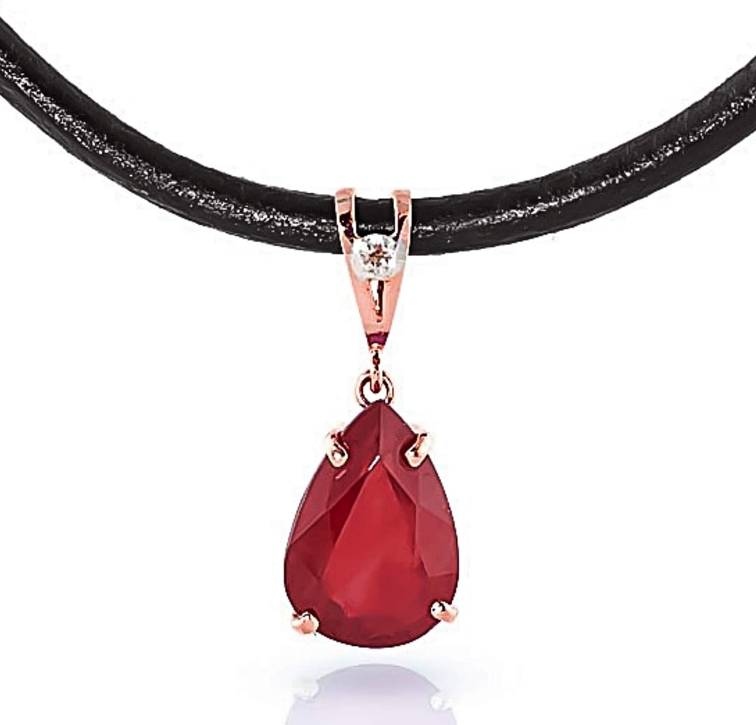 Galaxy Gold GG 5.01 ct 14k Solid Gold Leather Ruby Diamond Collar Necklace 4302