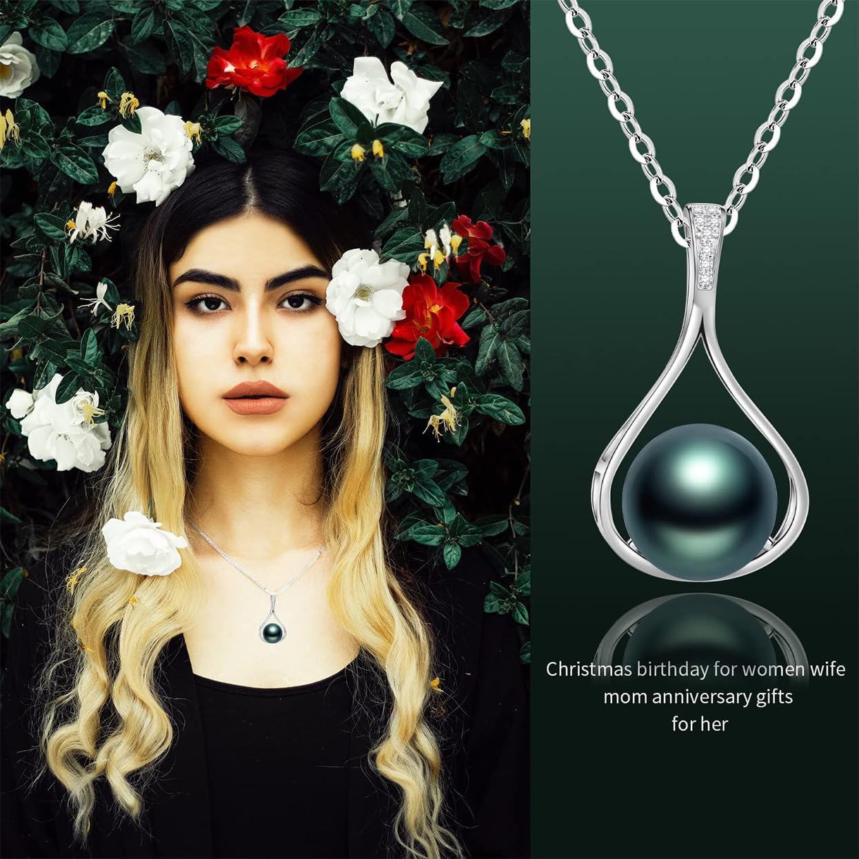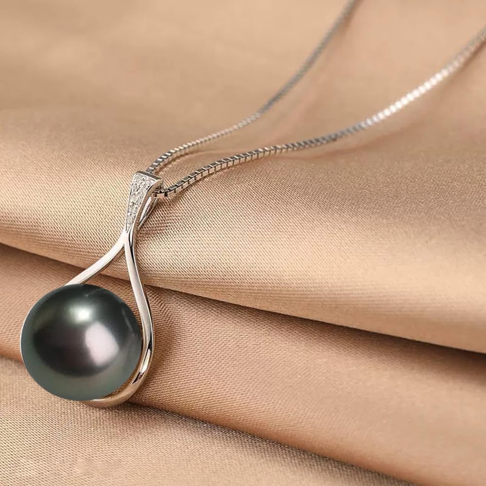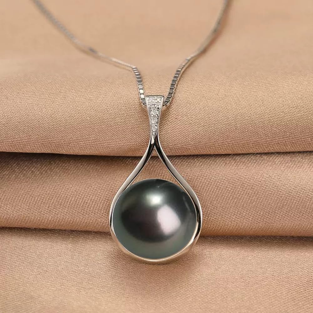 Gifts for Women-Tahitian-Black-Pearl-Necklace-Gift for Wife Wedding Birthday Anniversary-Mom Girlfriend Her Mothers Day Valentines Day Christmas-18K Gold Plated Sterling Silver Pearl Pendant NO026