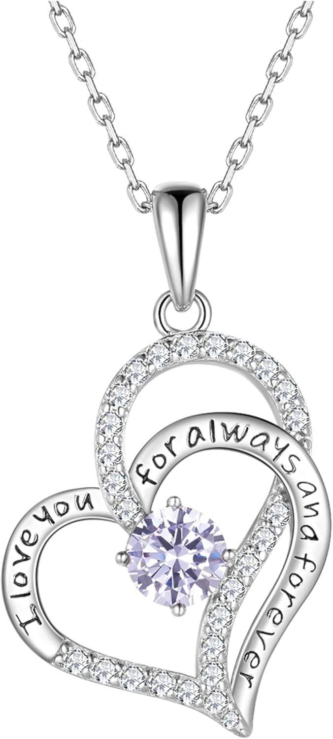 Heart Birthstone Silver Necklace for Women, S925 Sterling Silver Pendant Necklace Birthday Jewelry Gifts for Her Mother Mom Wife Girlfriend