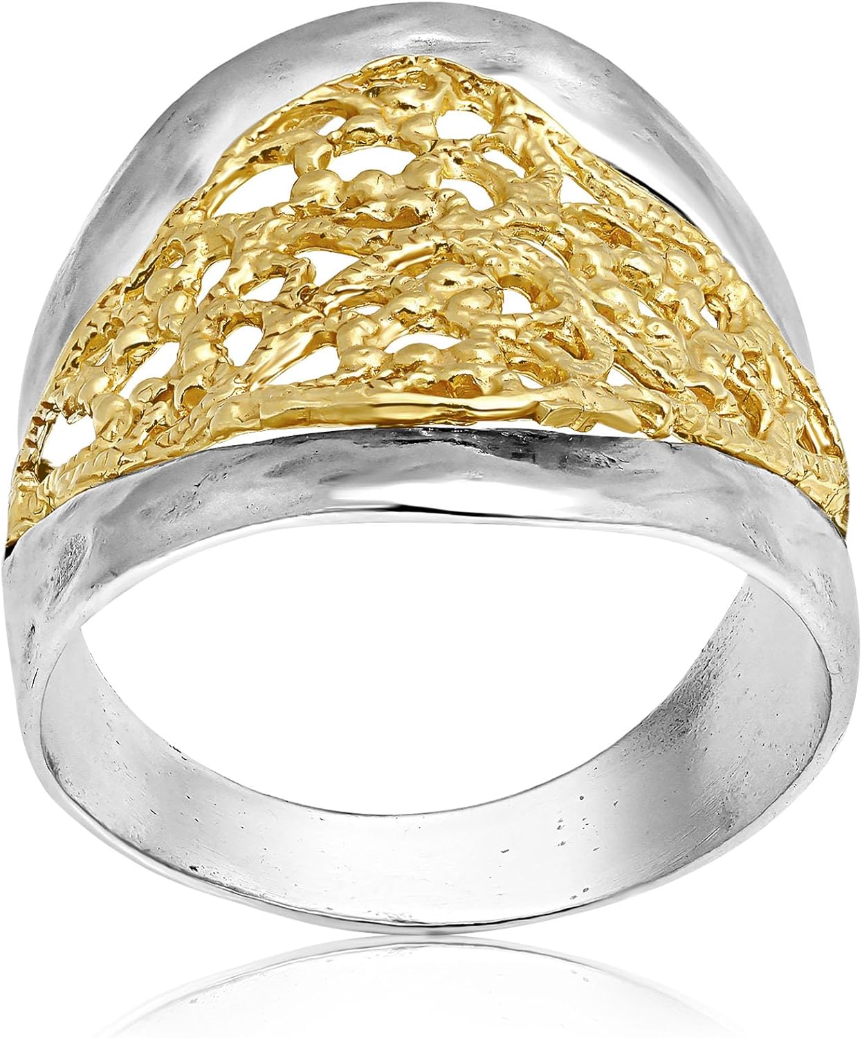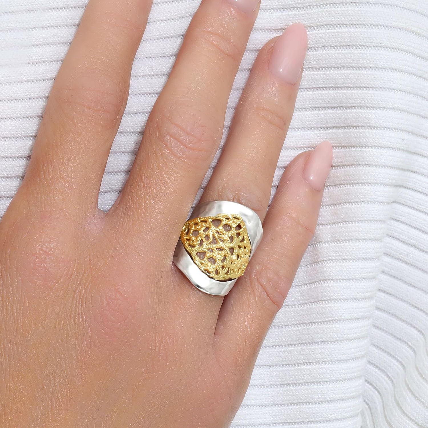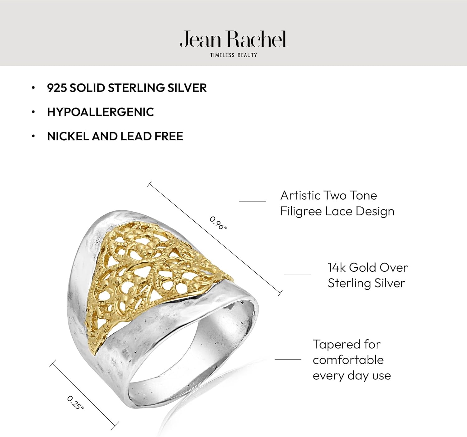 JEAN RACHEL JEWELRY Mixed Metal Two Tone Ring for Women – 925 Sterling Silver & 14K Gold – Filigree Statement – Non Tarnish, Nickel Free Fit