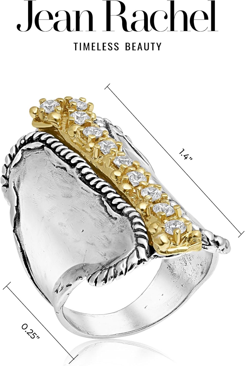 JEAN RACHEL JEWELRY Mixed Metal Two Tone Ring for Women – CZ Rope Bead Shield Ring – 925 Sterling Silver & 14K Gold Over Silver – Hypoallergenic Wide Band Statement Ring
