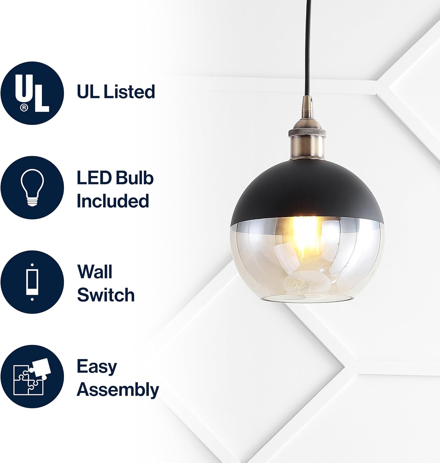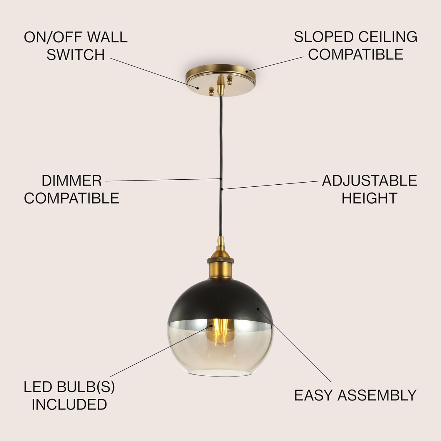 JONATHAN Y JYL3513A Nixon 7.5″ Adjustable Drop Globe Metal/Glass LED Pendant Contemporary Transitional Dimmable Dining Room Living Room Kitchen Foyer Bedroom Hallway, Brass Gold/Black
