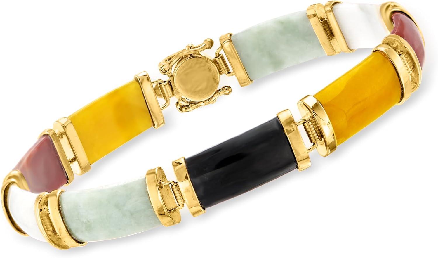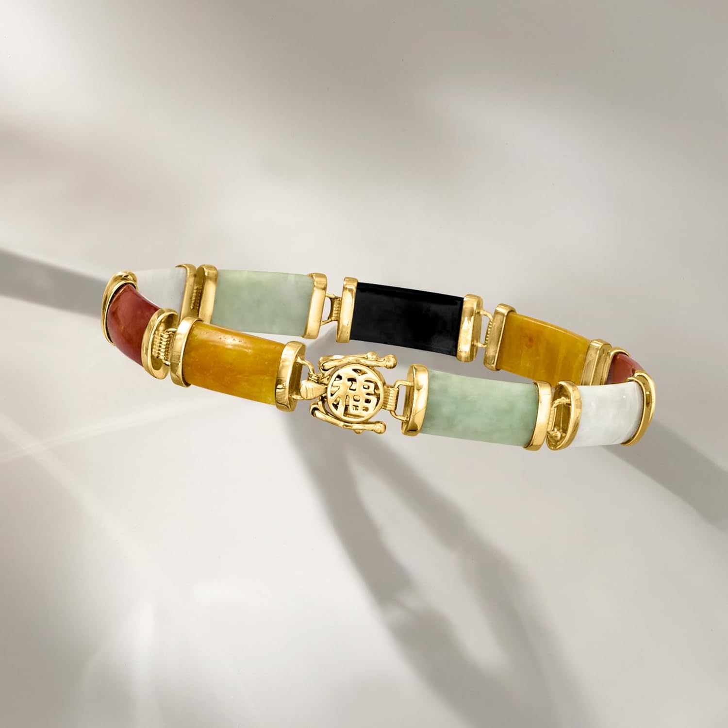 Ross-Simons Good Fortune Jade Bracelet in 18kt Gold Over Sterling