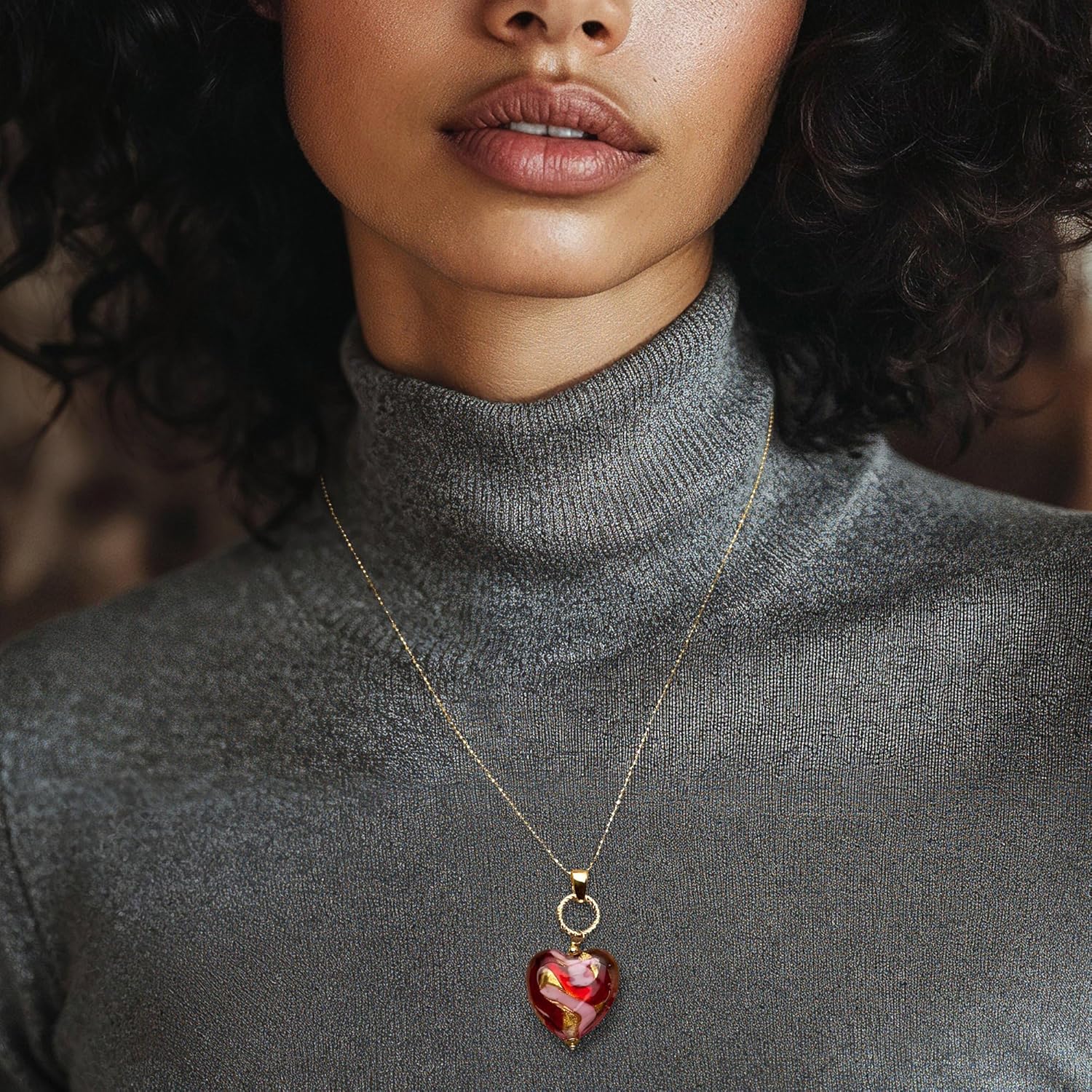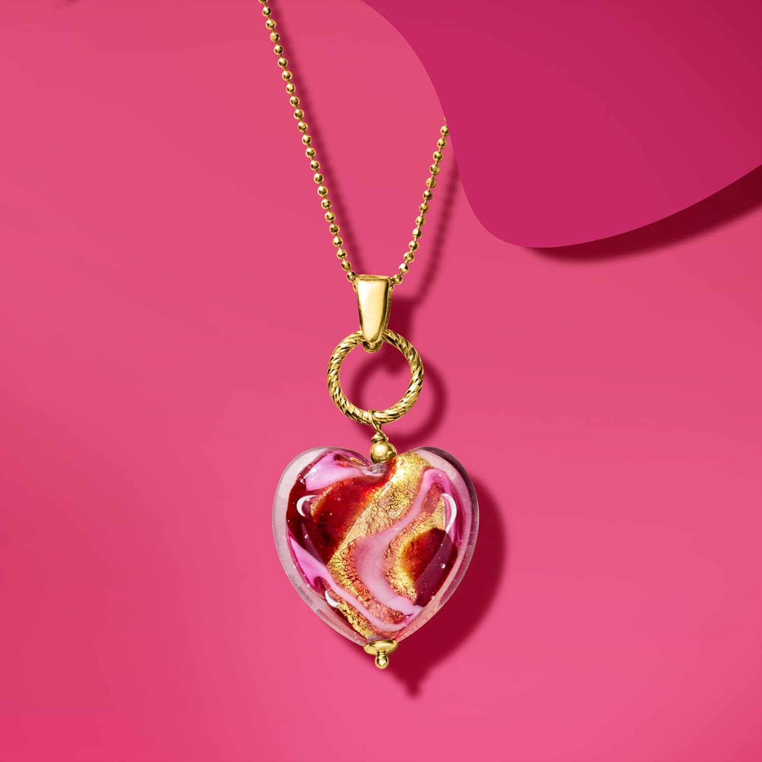 Ross-Simons Italian Red and Pink Murano Glass Heart Necklace in 18kt Gold Over Sterling