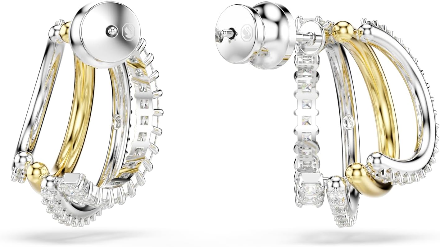 Swarovski Hyperbola Hoop Earrings, Mixed Cuts, Mini, Clear, Mixed Metal Finish