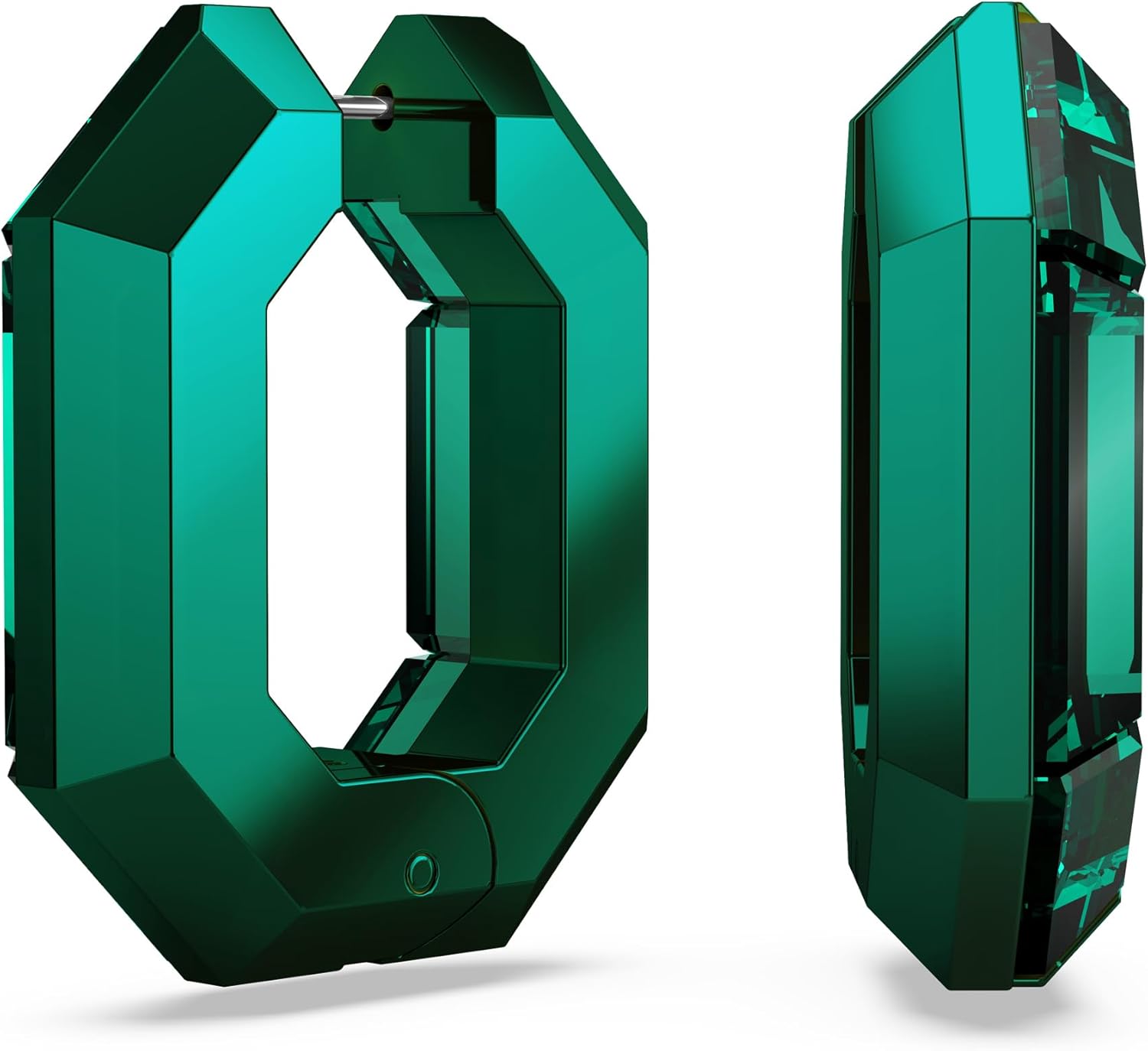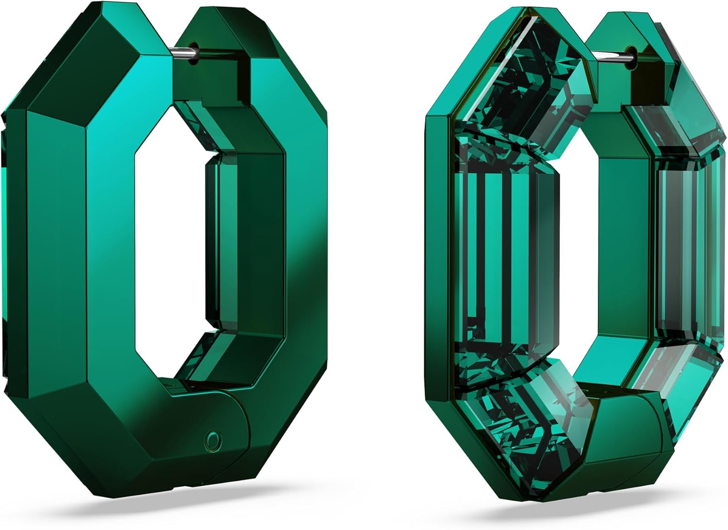 Swarovski Lucent Small Hoop Earrings, Green Octagon-Shaped Crystals, Part of the Swarovski Lucent Collection