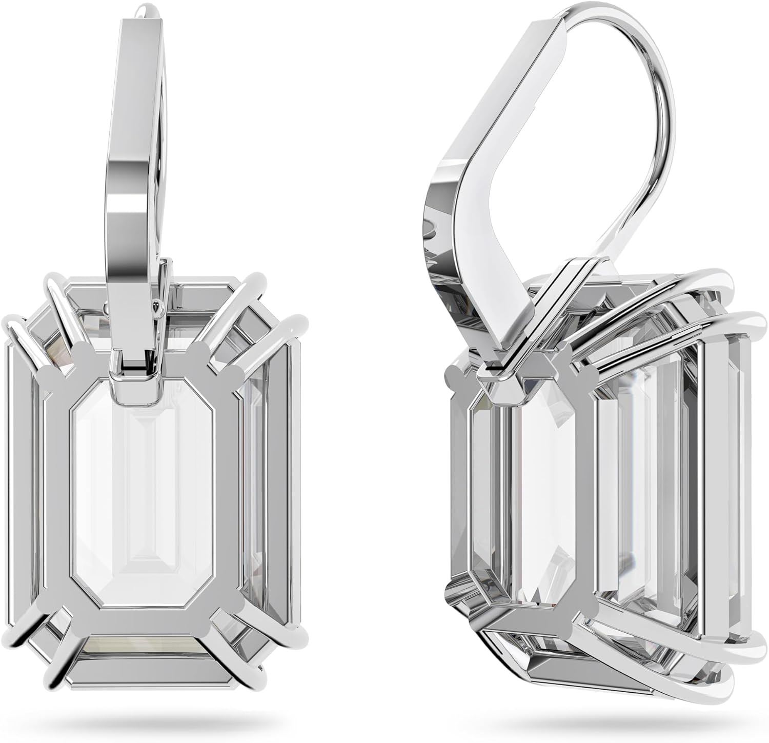 Swarovski Millenia Drop Earrings with Clear Oversized Octagon Cut Crystal in Rhodium Finish