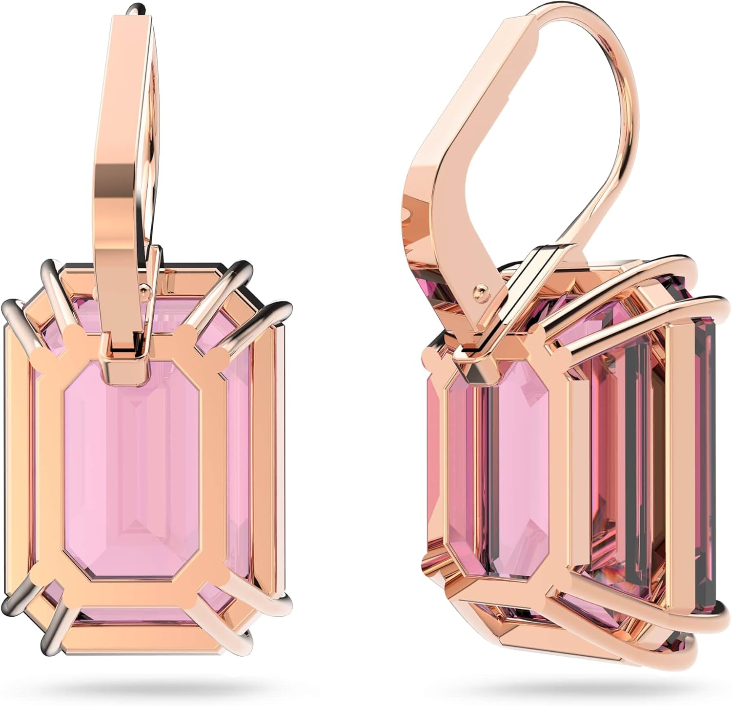 Swarovski Millenia Earrings, Octagon cut crystal, Pink, Rose-gold tone plated