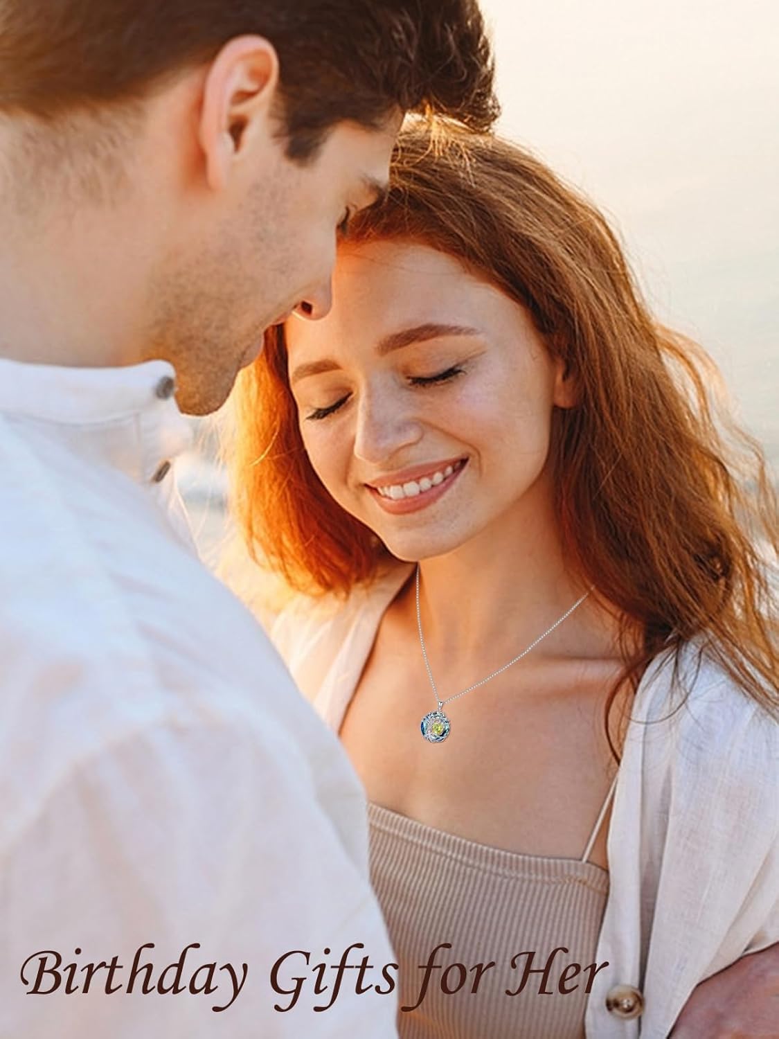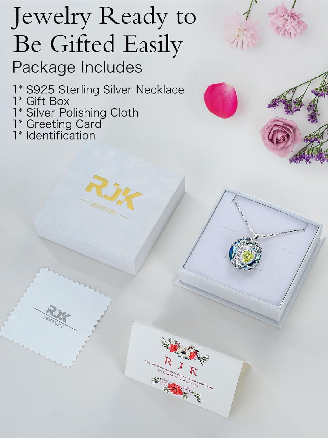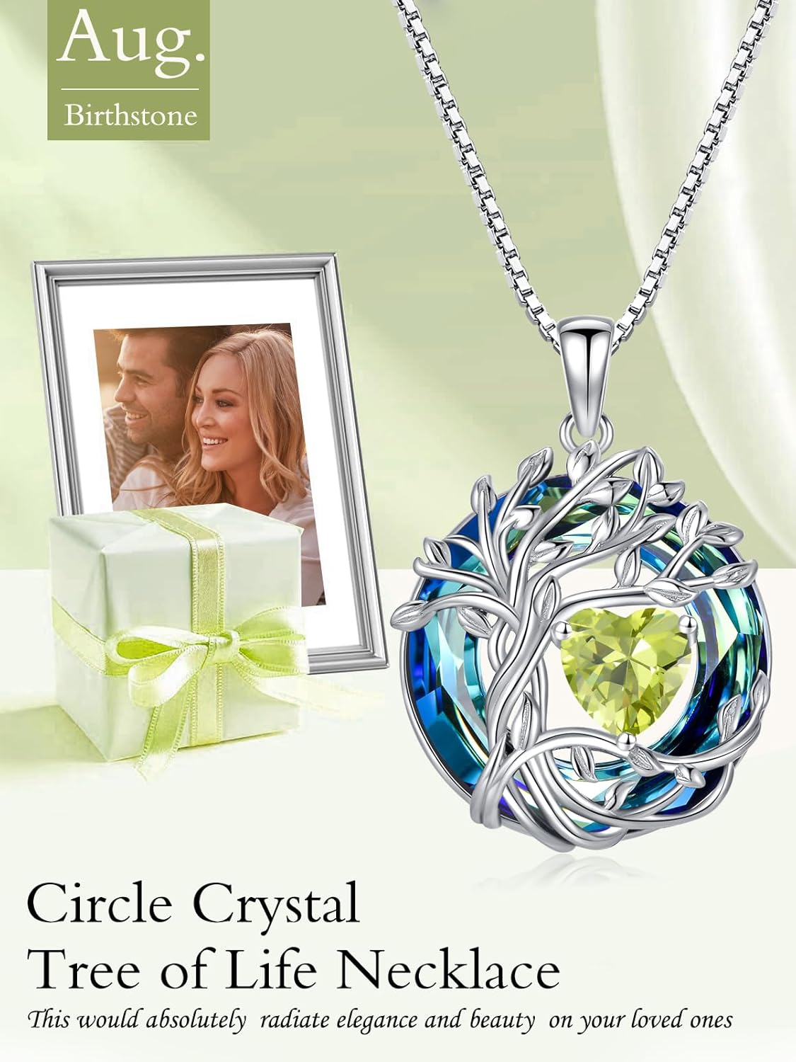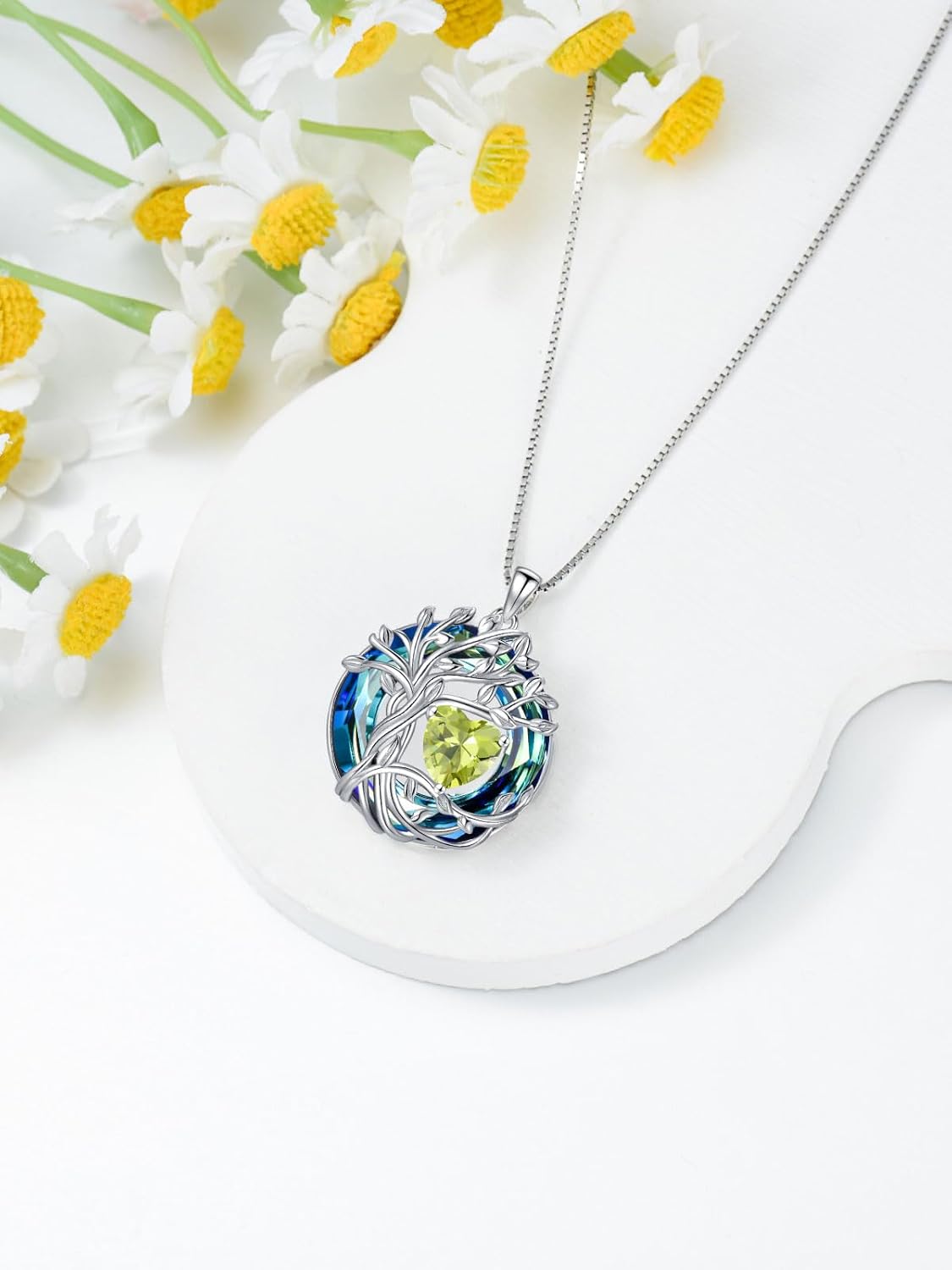 TOUPOP Tree of Life Birthstone Necklace 925 Sterling Silver Pendant Austrian Crystal Jewelry Anniversary Birthday Christmas Gifts for Women Mom Her Wife