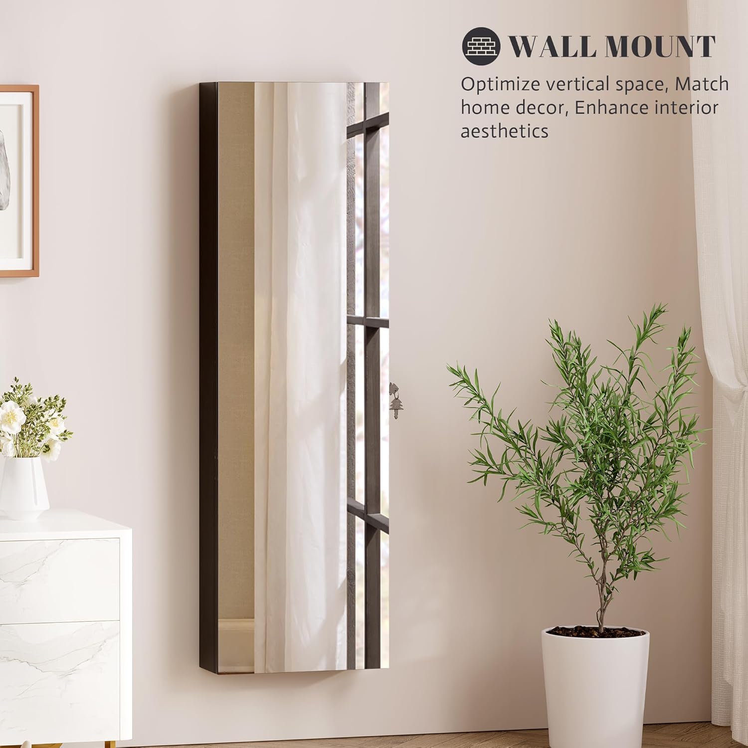 [Quality Material] Crafted from durable wood, this jewelry cabinet ensures long-lasting use. Its elegant white finish complements any room décor, adding a touch of sophistication. Easy to assemble, it includes all necessary mounting accessories for a hassle-free setup