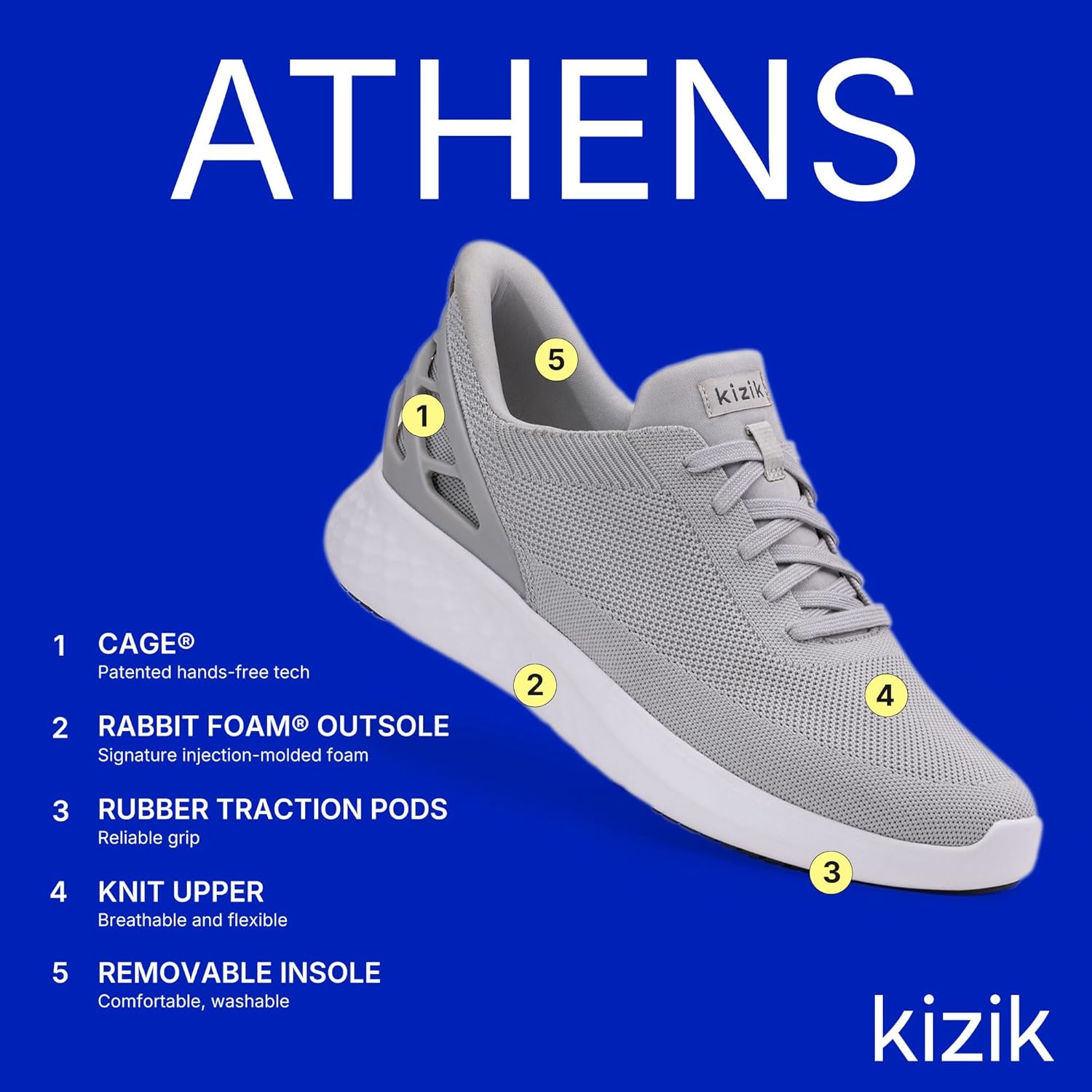 Kizik Slip On Sneakers: Athens – Comfortable All-Day Wear, Hands Free Convenience, Breathable Knit Top, Mens & Womens Walking Shoes with Arch Support