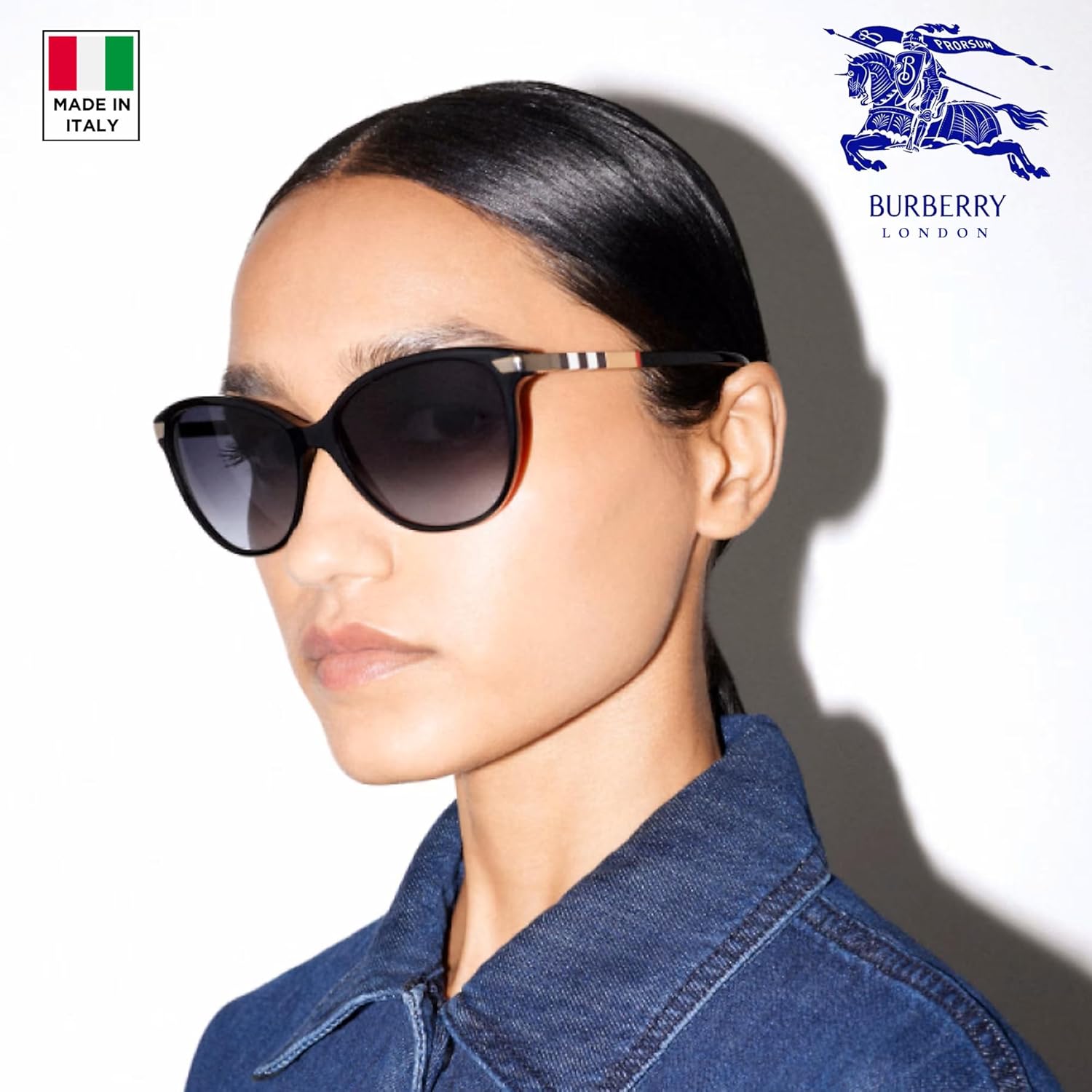 BURBERRY BE4216 Cat-Eye Shape Sunglasses With Eyewear Kit Bundle – Sun Glasses with High Bridge Fit – Women’s Designer Sunglasses