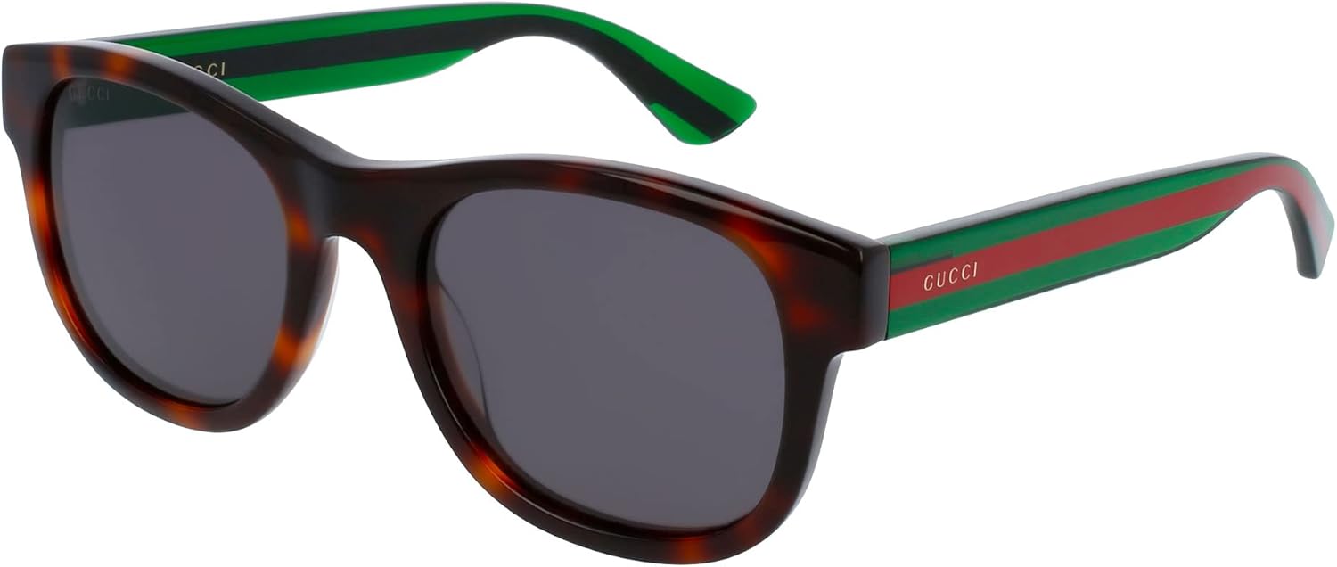 Gucci Sunglasses. Series number: GG0003S. Color code: 003. Shape: Square. Lens Width: 52 mm. Lens Bridge: 21 mm. Arm Length: 145 mm. 100% UV protection. Non-Polarized. Frame Material: Plastic. Frame Color: Havana, Green, Grey. Lenses Type: Grey. Rim Style: Full-Rim. UPC/EAN code: 889652384955. Gucci Grey Square Men’s Sunglasses GG0003SN 003 52. Made in Italy.