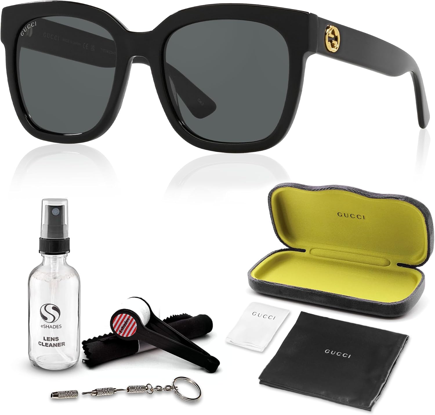 Gucci GG0034SN Square Shape Sunglasses wih eSHADES Eyewear Kit Bundle