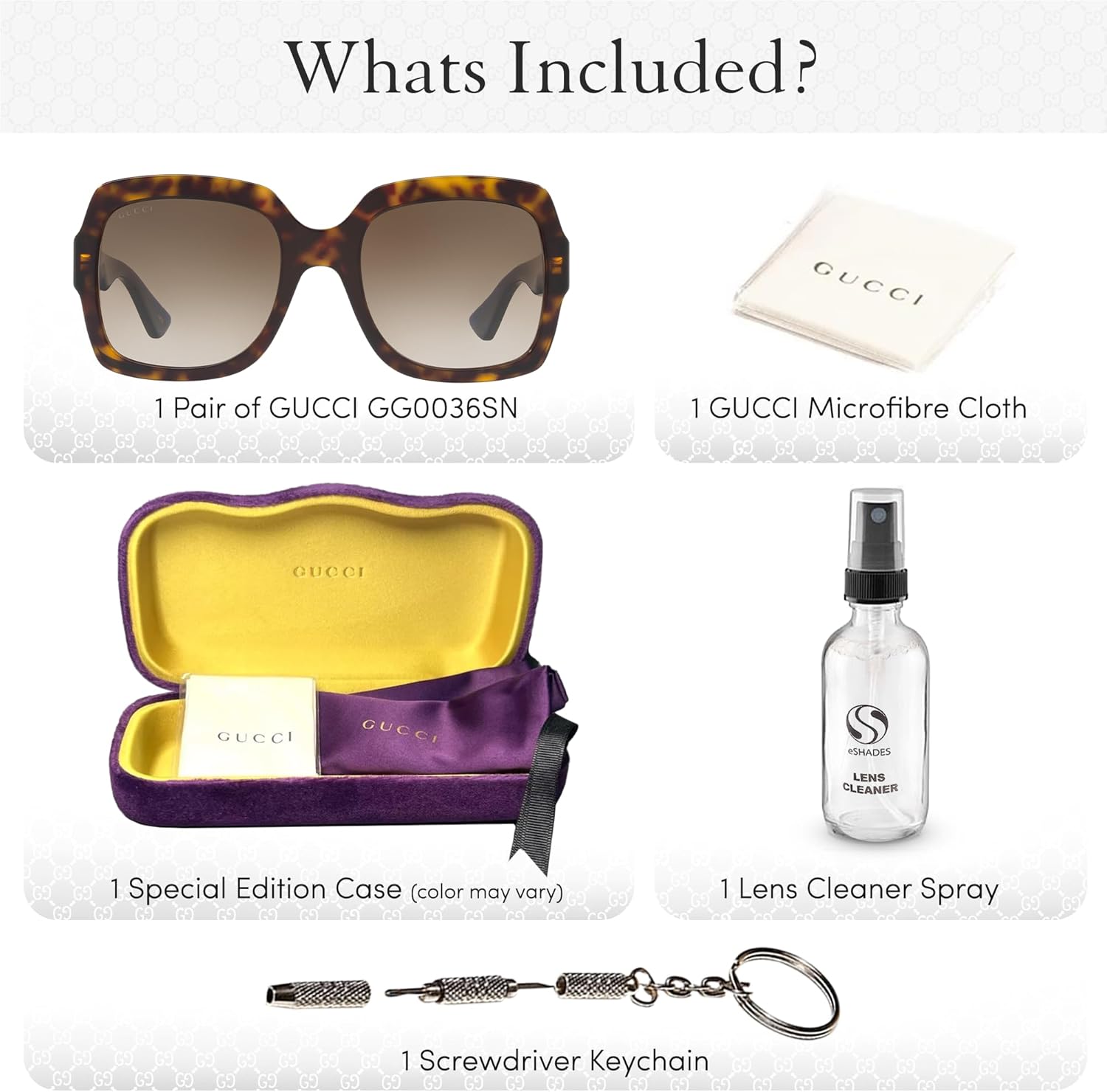 Gucci GG0036SN Designer Fashion Sunglasses – Elegant, Sophisticated & Stylish Rectangular Shape Eyewear W/Luxury eSHADES Kit