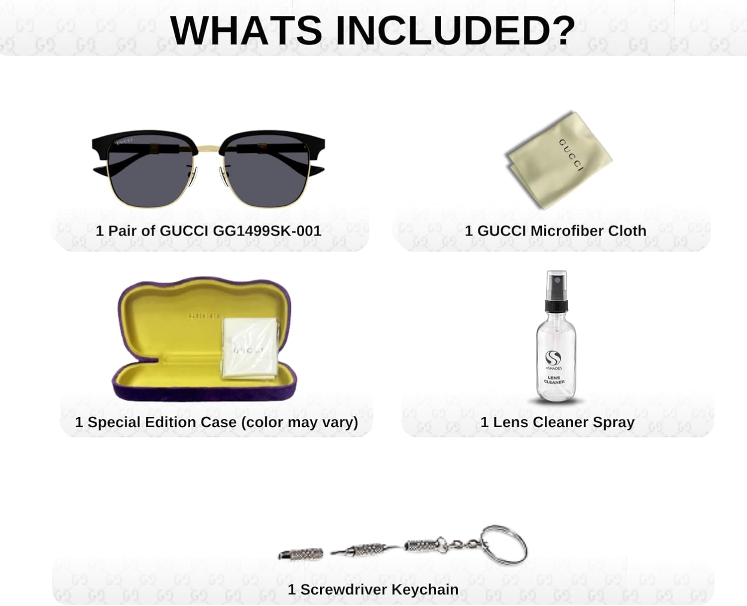 Gucci GG1499SK Clubmaster Shape Lettering Logo Sunglasses with eSHADES Eyewear Kit Bundle