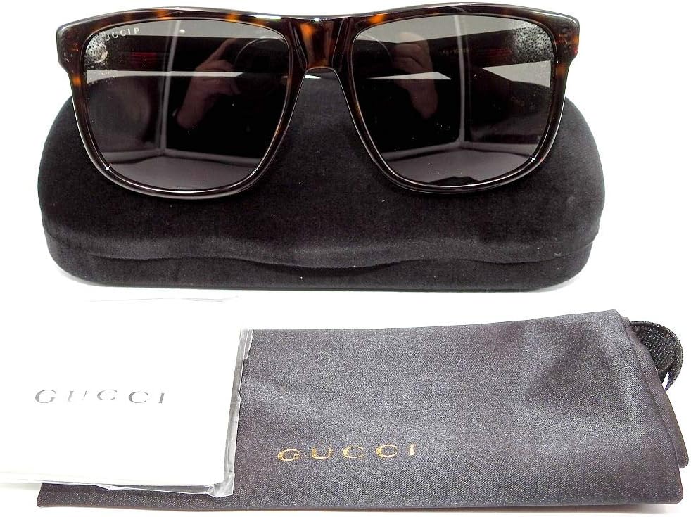 Gucci Sunglasses. Color code: 003. Size: 58. Shape: Square. Lens Width: 58 mm. Lens Bridge: 16 mm. Arm Length: 145 mm. 100% UV protection. Polarized. Frame Material: Acetate. Frame Color: Dark Havana. Lenses Type: Grey. UPC/EAN code: 889652047584. Gucci Polarized Grey Square Sunglasses.