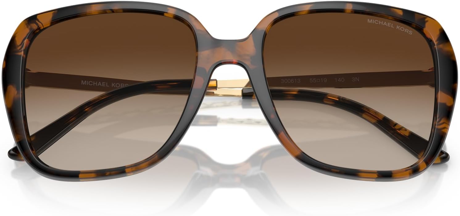 The Michael Kors MK2206 Albany sunglasses feature a bold square silhouette that delivers contemporary style with timeless sophistication. These Michael Kors square sunglasses showcase premium acetate construction that creates striking visual appeal while maintaining the luxury quality that defines the brand. The sophisticated design features textured metal temples that add refined detailing and visual interest to the classic square silhouette. Available in both classic black and rich dark tortoise colorways, each featuring complementary gradient lenses that add depth and dimension to the overall design. The oversized square frame provides confident coverage and flattering proportions that work beautifully for women seeking statement-making eyewear. Crafted with Michael Kors’ signature attention to detail, these fashion sunglasses provide excellent UV protection while creating a sophisticated fade effect from dark to light. The Michael Kors tortoise shell sunglasses option offers warm, dimensional appeal with classic tortoiseshell patterning, while the sleek black frame delivers modern elegance. Perfect for the fashion-conscious woman who appreciates both bold design and versatile styling options, the MK2206 Albany represents the brand’s commitment to creating eyewear that makes a statement. These lightweight sunglasses offer comfortable all-day wear while providing the confident style presence that Michael Kors is renowned for. The premium acetate construction ensures durability and long-lasting appeal, making these sunglasses a smart investment piece while also serving as an ideal gift. From casual weekend activities to sophisticated occasions, these UV protection sunglasses adapt effortlessly to any setting with their versatile square silhouette. Each pair comes with a protective case and cleaning cloth to maintain their pristine appearance. Michael Kors sunglasses sold by authorized sellers, are eligible for all manufacturer warranties and guarantees.