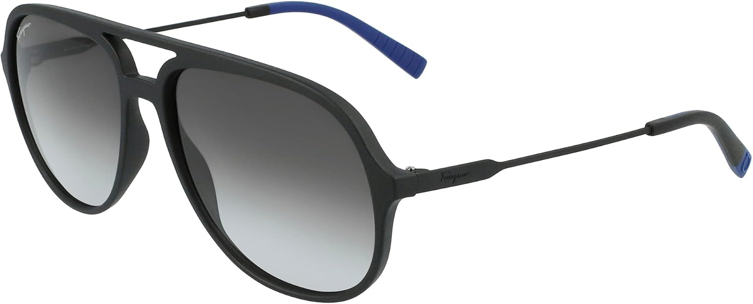 Salvatore Ferragamo Sunglasses. Series number: SF999S. Color code: 002. Shape: Pilot. Lens Width: 60 mm. Lens Bridge: 16 mm. Arm Length: 145 mm. 100% UV protection. Non-Polarized. Frame Material: Plastic. Frame Color: Matte Black. Lenses Type: Grey Gradient. Rim Style: Full-Rim. UPC/EAN code: 886895467513. Salvatore Ferragamo Grey Gradient Pilot Men’s Sunglasses SF999S 002 60.