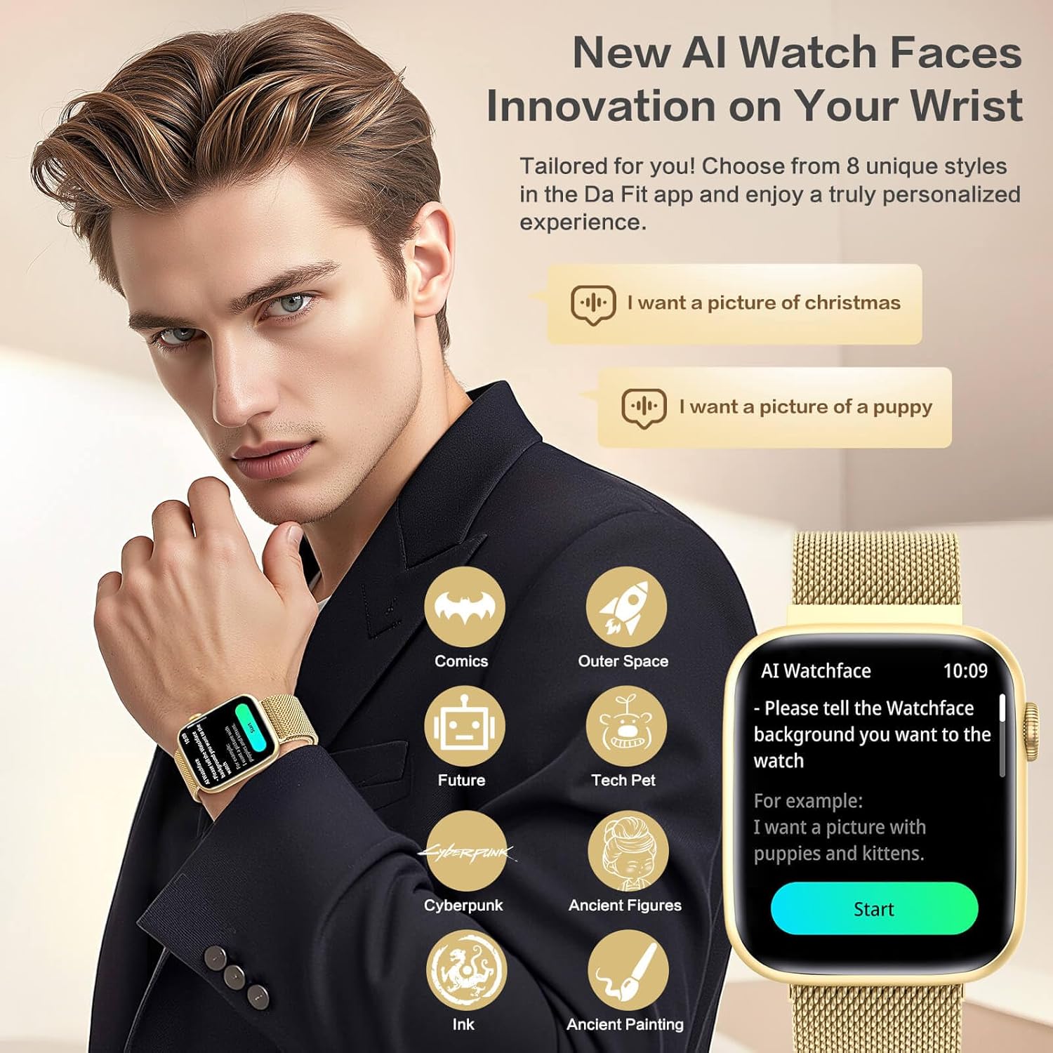 YOUR PERSONAL AI ASSISTANT — This is a brand new AI smart watch that keeps you at the forefront of technology. This smartwatch has built-in DA GPT AI. Once connected and paired with your phone, you can ask questions, get instant advice, translate languages, or even seek emotional support and health tips—anytime, anywhere. Your AI is always online and ready to help. (Replies are limited to 512 characters—ask the AI to simplify if needed.)