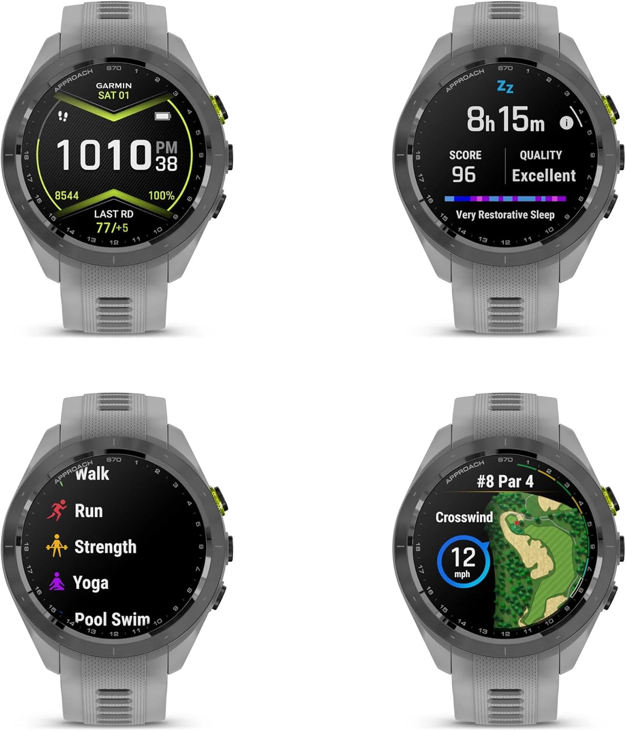 Enhance Your Fitness Journey: The Garmin Approach S70 empowers you to improve your fitness with features Like Fitness Age To Estimate Whether Your Body Is Younger Or Older Than You Are. Aaccess 1,600 exercises through the Garmin Connec app, free running training plans from Garmin Coach. HIIT workout tracking for various routines, and advanced strength training insights, including muscle group analysis.