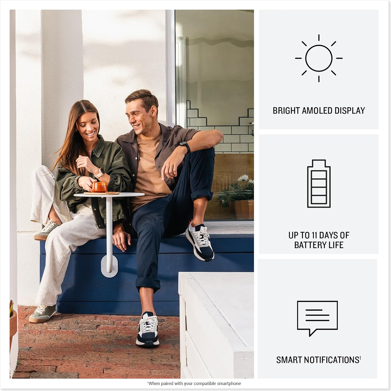 Designed with a bright AMOLED display, get a more complete picture of your health, thanks to battery life of up to 11 days in smartwatch mode
