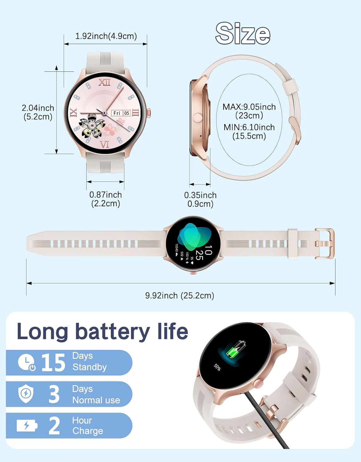 【Large HD Touch Screen & Personalized Watch Faces】The 1.39” HD full touch screen will bring you clear and bright visual experience. After connected to our App, there are over 150+ different beautiful dials to choose from, you can also set the watch dial with your own pictures.