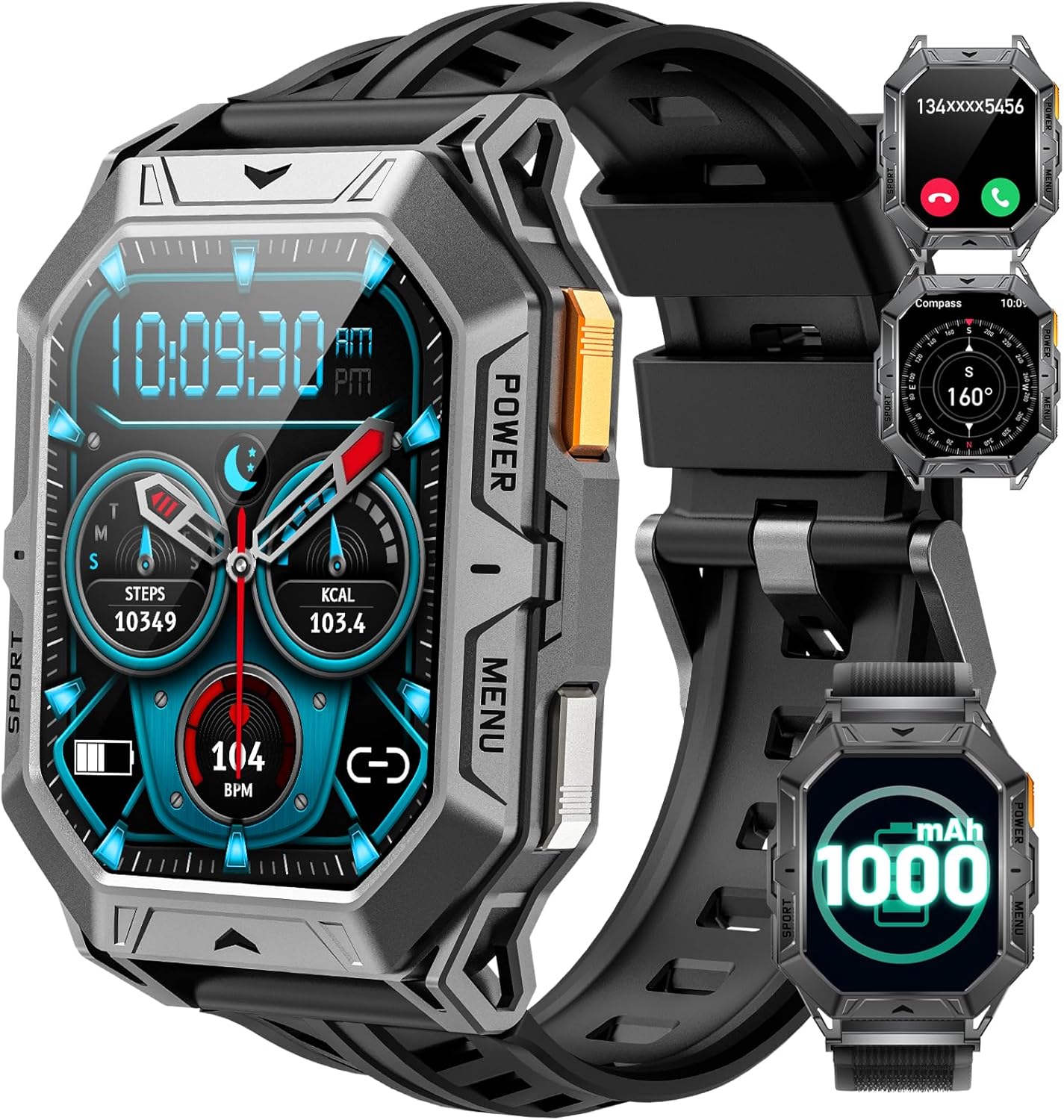 【100+ Sports Modes & Military Grade】: This rugged sport smart watch combines over 120 sports modes with military-grade durability, built to withstand the toughest conditions. Whether you’re running, hiking, or engaging in high-intensity training, this watch offers precise tracking of your performance and health metrics. The military smartwatch for men has passed multiple durability tests, including shock and water resistance, ensuring strong durability and drop resistance. Its stainless steel bezel and PC-ABS alloy bottom shell enhance durability and impact resistance, making it perfect for outdoor adventures or intense workouts. Elevate your fitness with a watch as tough as you are!