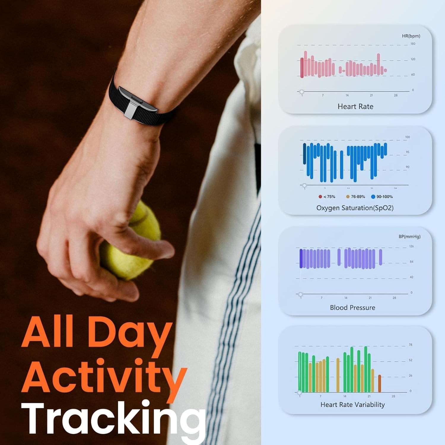 【Sports Monitor Without Display】 Minimalist screenless design means you can wear it all day long with very low power consumption for 10 days of long-lasting battery life. Professional-grade technology and lab-quality precision sensors provide you with the best data possible