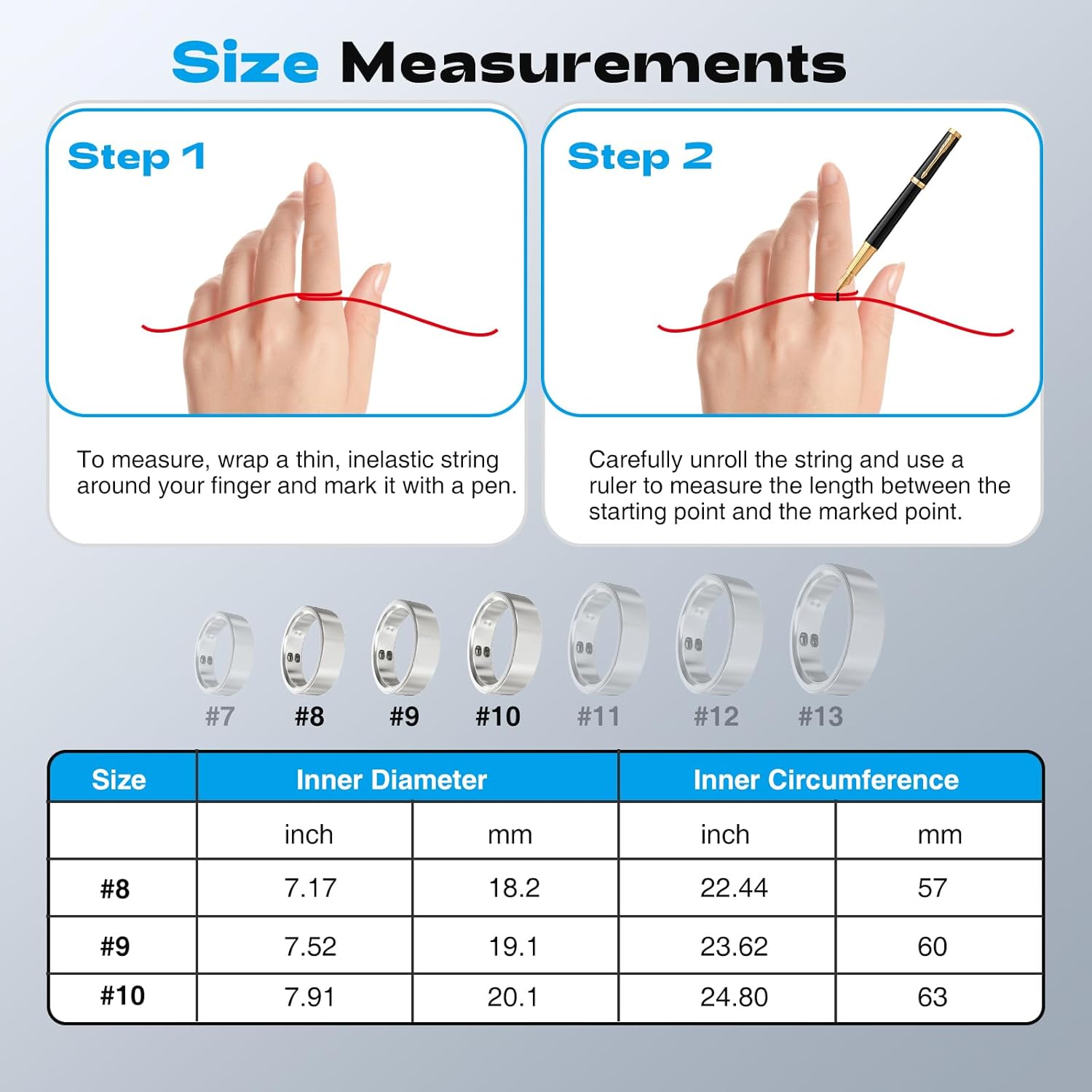 【Sleek & Durable Design】: Fashion Meets Function. Crafted from 316L stainless steel, this ultra-lightweight smart ring combines elegance with resilience. Choose from silver or gold finishes, comfortable fit. With 5ATM waterproof rating, wear it swimming, showering, or sweating – it’s built to keep up with your life!