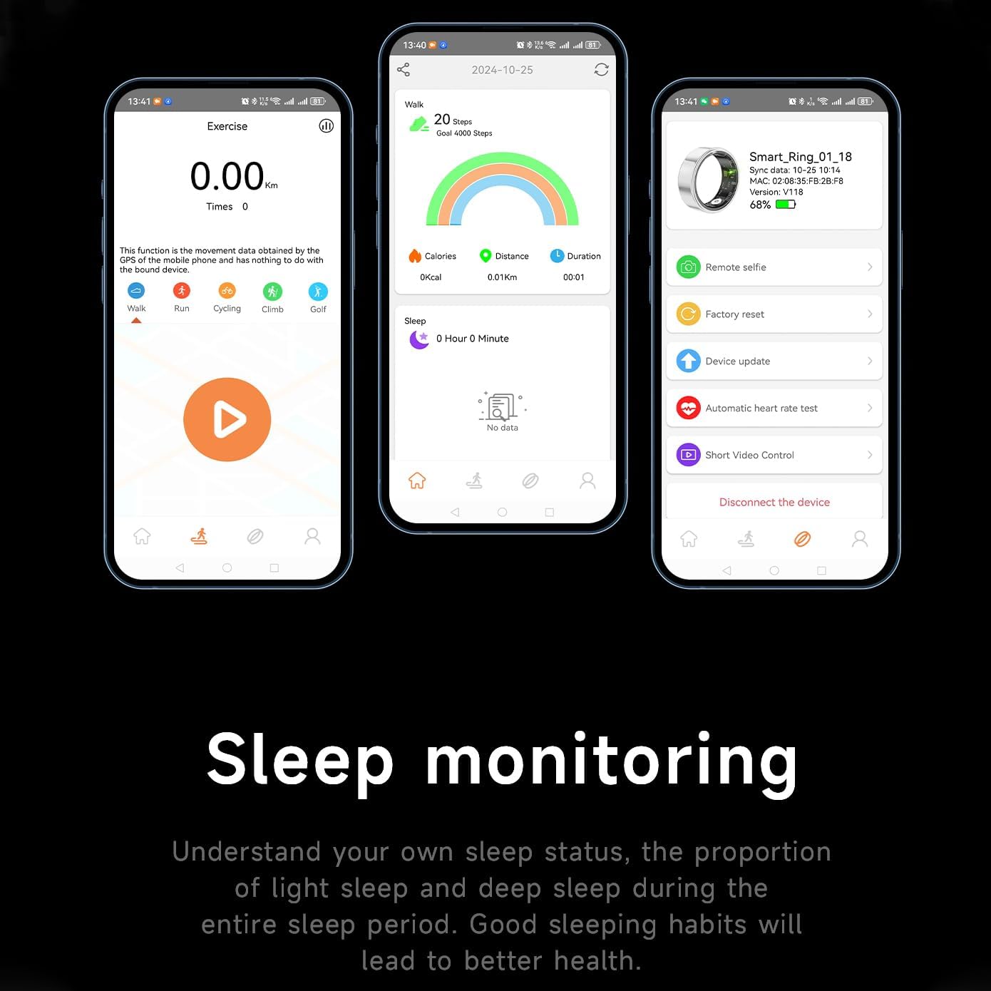 🌃【Sleep Analysis】Smart Ring offers a comprehensive sleep Index, when you fall asleep, the smart ring can automatically monitor your sleep quality with detailed reports on the proportion of light sleep and deep sleep during the entire sleep period, the sleep tracker ring helps you understand your rest patterns for better overall health