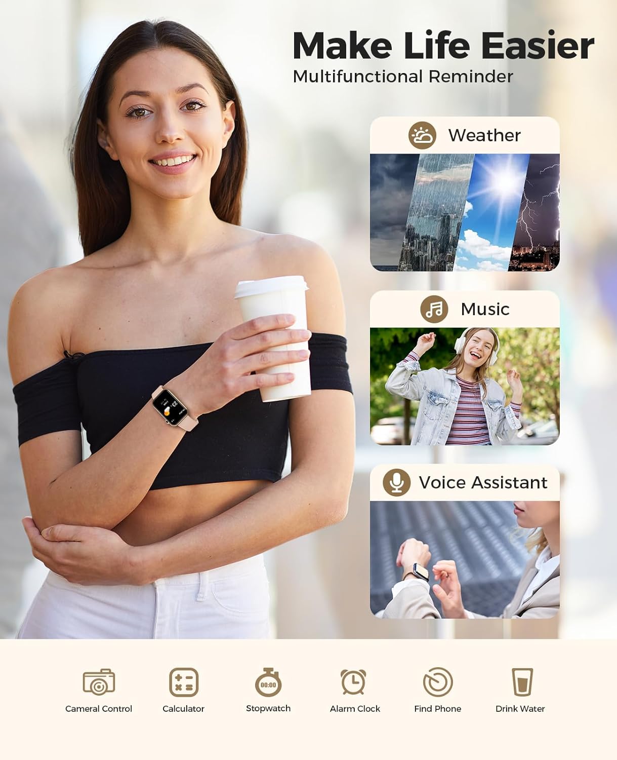 【24H Accurate Health Monitoring】Smart watches for women adopt advanced sensors to accurately monitor your 24/7 blood oxygen, blood pressure and heart rate. Blood pressure watch can also professionally interpret the sleep characteristics at each stage and analyzes sleep quality including deep sleep, light sleep, and wake-up times. You can view real-time data on this running watch at any time, or view the recorded continuous data and analysis reports on the App.