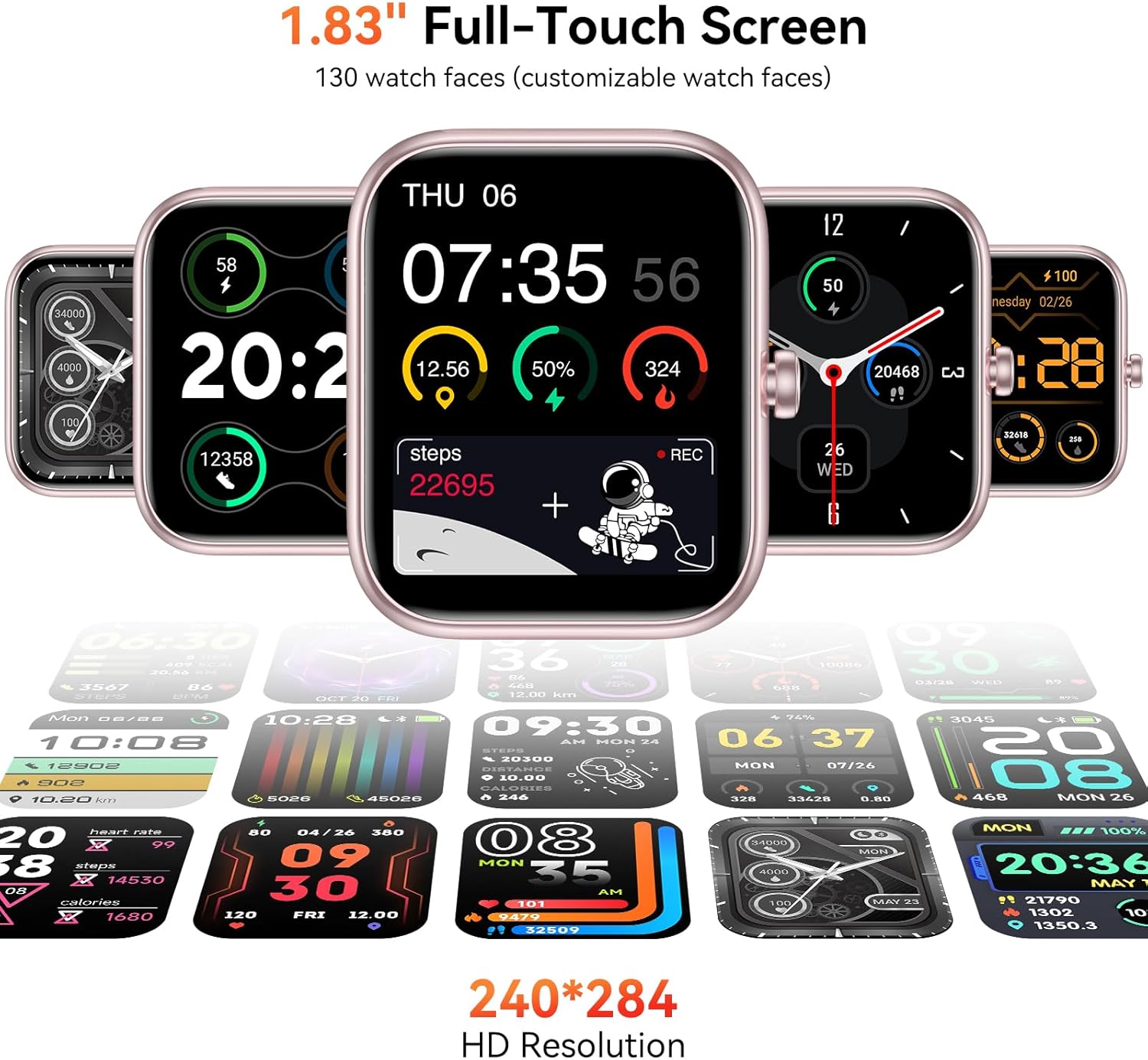 1.83 HD Screen: Fitness tracking watch with HD screen, enjoy vivid colors and sharp details on the ultra-large touchscreen, even under sunlight, with customizable watch faces