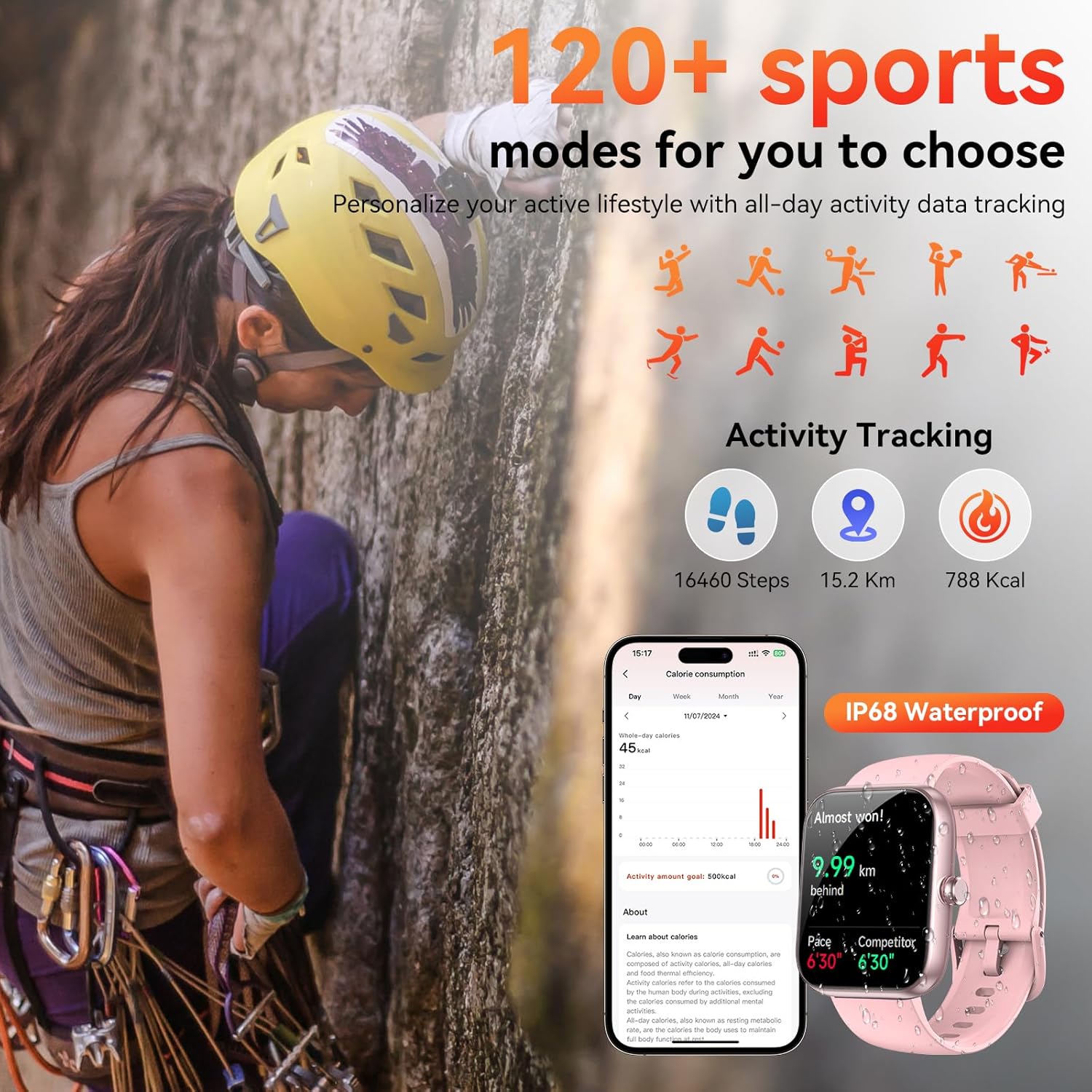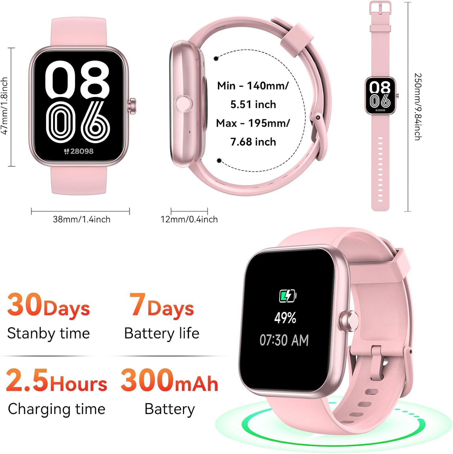 Bluetooth Calls: Smart watch for men women is powered by Bluetooth 5.3 chip Provides you with a stable connection, make or answer calls directly through the watch’s, ideal for workouts, driving, or busy days