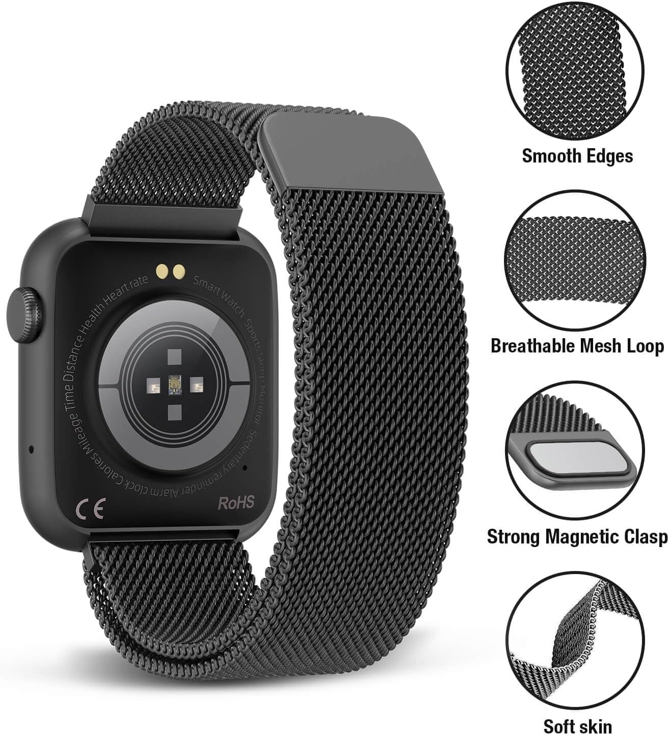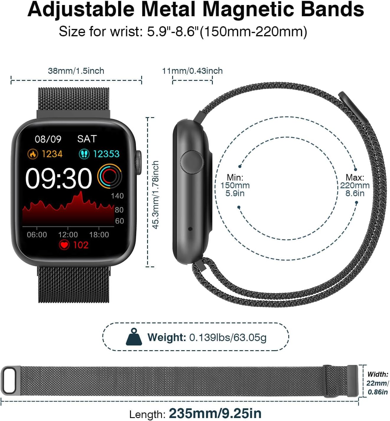 HEALTH MONITORING—This Bluetooth smart watch provides 24/7 heart rate monitoring, along with blood oxygen, stress, and sleep tracking. Keep an eye on your health status and track trends over time to make smarter fitness and lifestyle choices. (Disclaimer: This is not a medical device. Measurements are for reference only.)