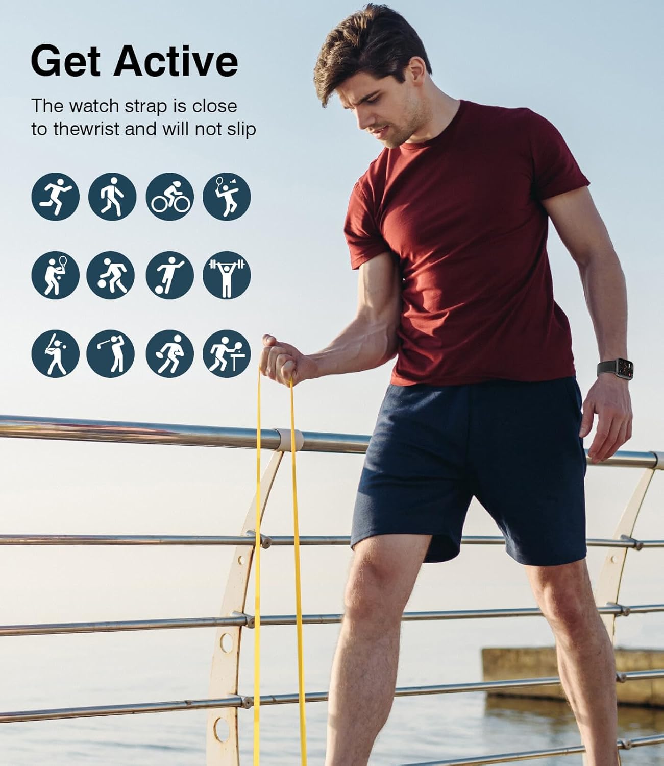 123 SPORTS MODES—Supports 123 sports modes including running, cycling, and yoga. The fitness tracker for Android and iOS accurately records distance, pace, and calories burned to help you optimize your workout and achieve your fitness goals.