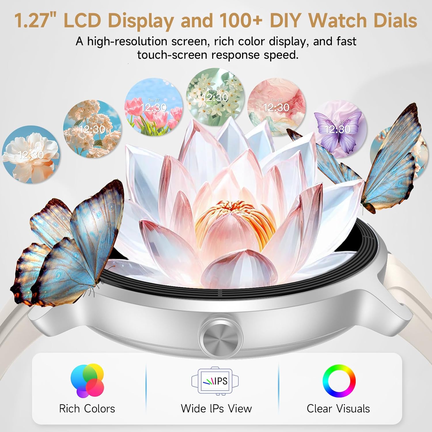 [1.27-inch HD Screen & Customizable Watch Faces]: Smartwatch for Android iOS phones is equipped with a 1.27-inch HD screen. Supports hand-swiping and has 100 beautiful cloud watch faces. Making the smartwatch for men women more stylish and durable. Change the watch face through the ‘veryfit’ app, or long press the screen directly to access the switching options, and even upload your own photos from your phone, such as selfies or photos of pets to the smartwatch to create a truly personalized look.