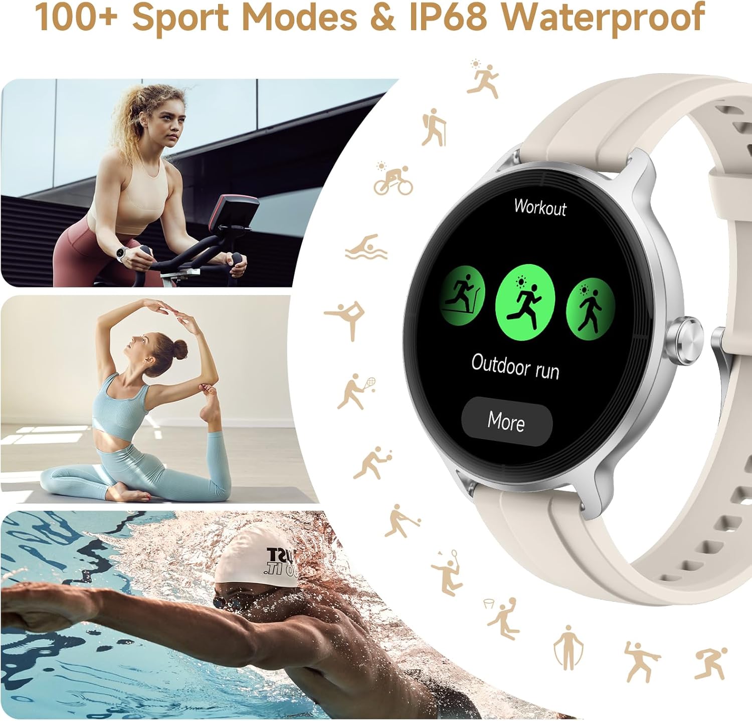 YMZ Smart Watch for Men Women, 1.27″ HD Touchscreen Fitness Tracker, Bluetooth Calling, 100+ Sports Modes, Sleep Monitor, IP68 Waterproof, Compatible with Android & iPhones