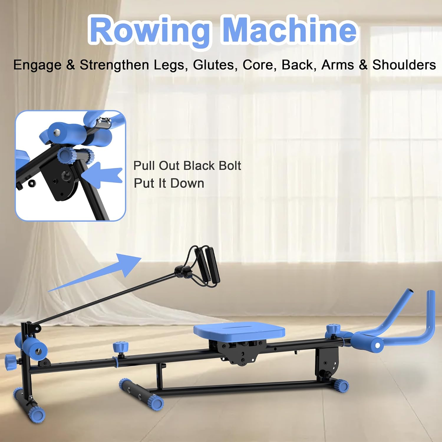 Multifunctional Rowing Machine: With just a single fitness equipment, you can work every major muscle group, your arms, abs, torso, glutes, legs, and even cardio.