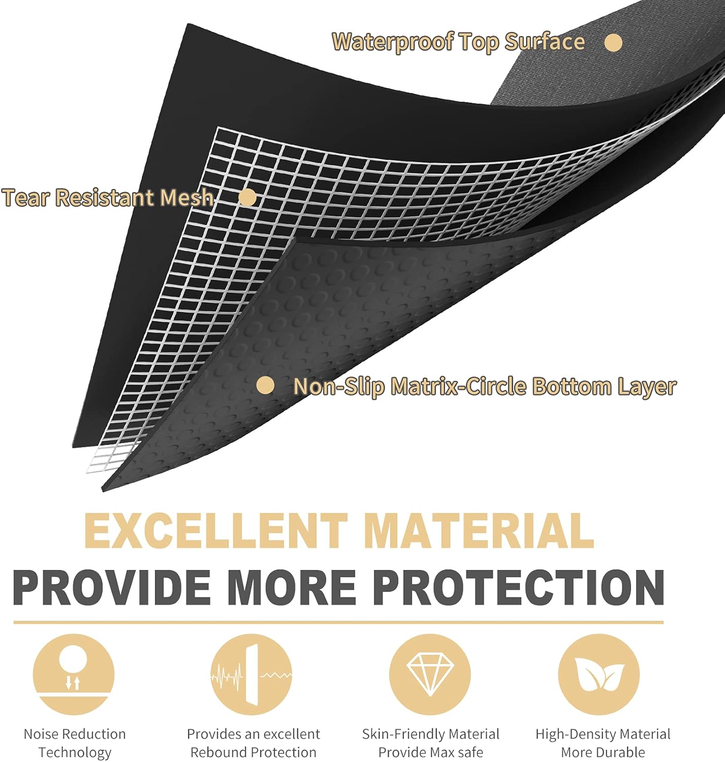 【NON-TOXIC AND SAFE TO USE】We believe in creating a premium quality gym floor mat that is safe for your body, mind, and spirit. Our heavy-duty mats are no latex, no phthalate, no silicone, and no toxin. Durable and Long-lasting. Easy to clean and roll-up.