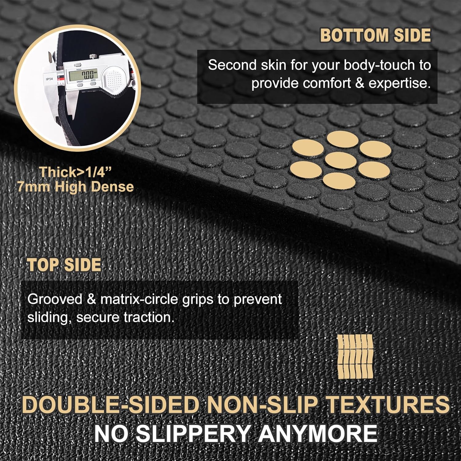 【DOUBLE SIDED NON-SLIP SURFACES】The spacious mat has double-sided no-skid surfaces for enhanced traction and superior grip. Grooved & matrix-circle underside stops the mat from sliding on the floor. The subtly textured surface prevents hands and feet from slipping out of position to prevent injuries.