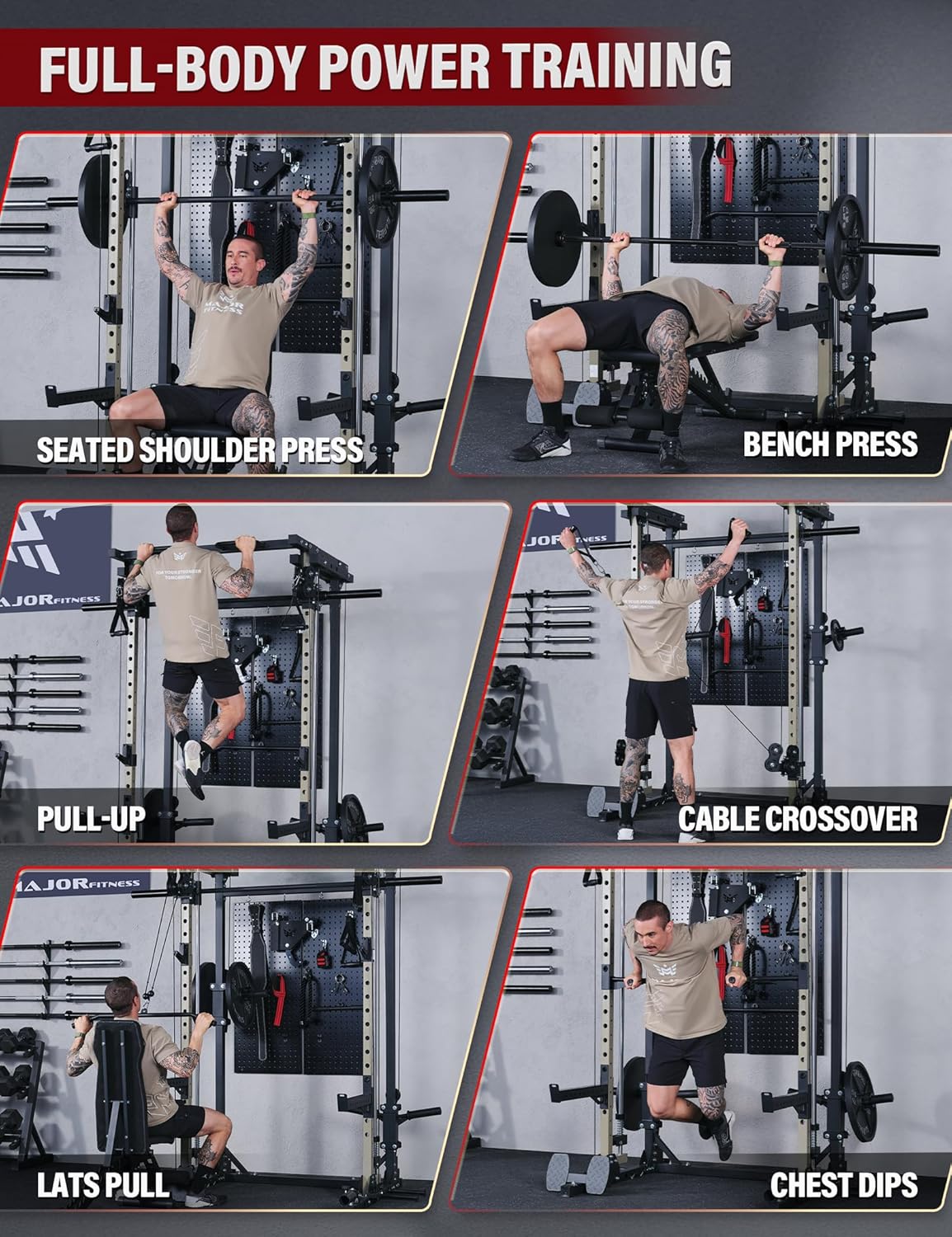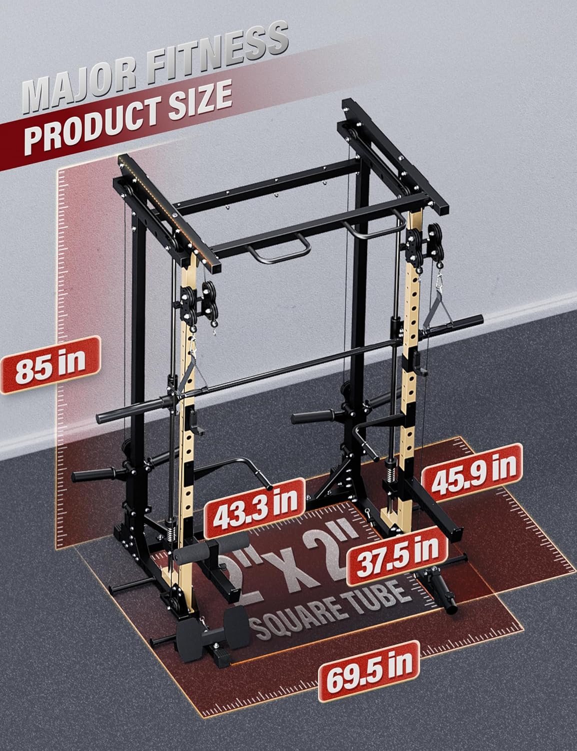 Major Fitness Drone3 Smith△ Machine – All-in-One Home Gym Squat Rack with Weight Bar, Cable Crossover Machine – Heavy-Duty Fitness Equipment for Strength Training and Full-Body Workouts
