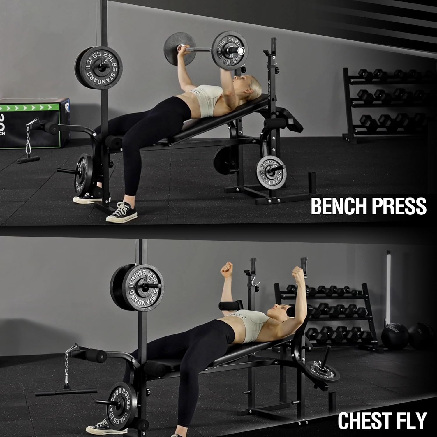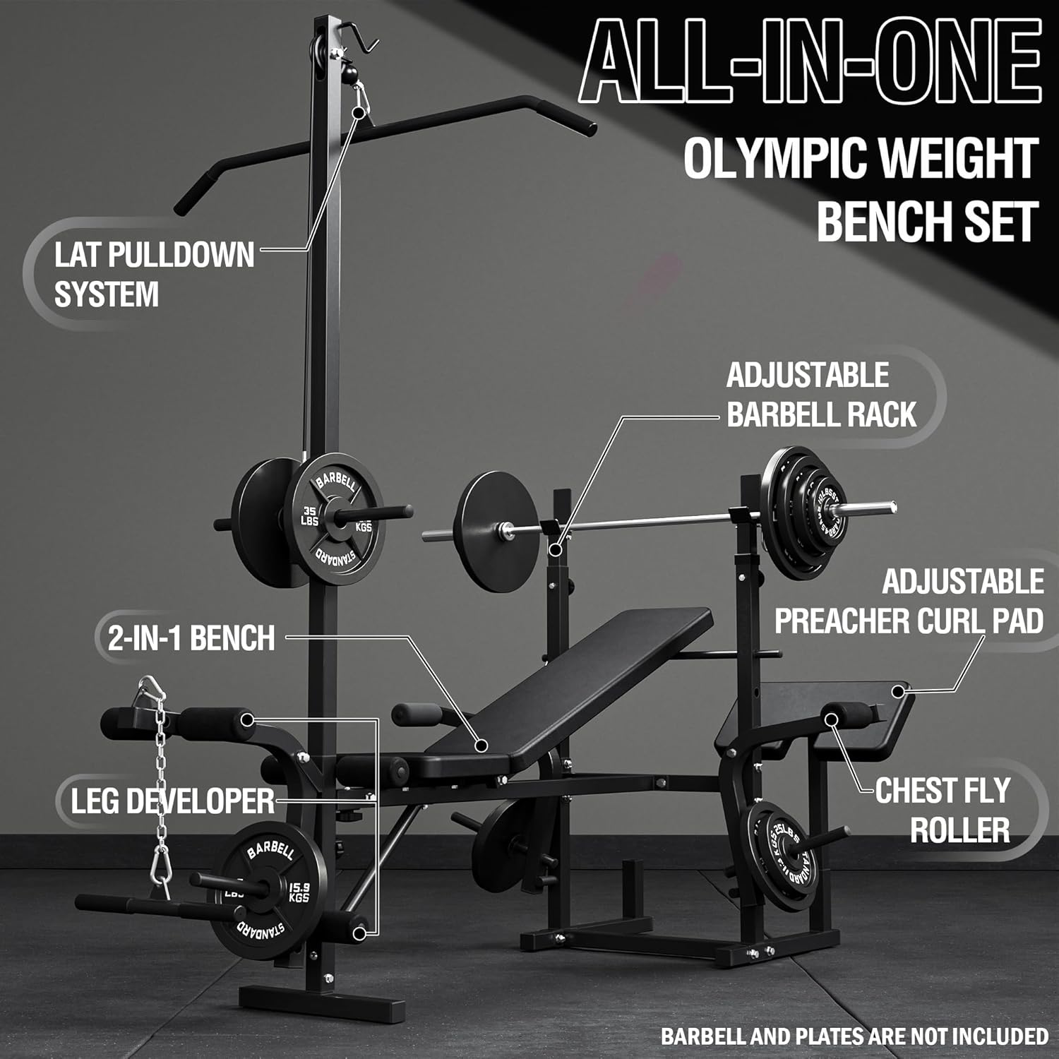 [Multi-Function Olympic Weight Bench] OB01 base unit is a true game-changer, condensing an entire commercial gym into a single weight bench. It offers an adjustable leg developer, adjustable barbell rack, FID weight bench, adjustable preacher curl pad, chest fly machine, and lat pulldown machine, making it a true all-round for your home gym