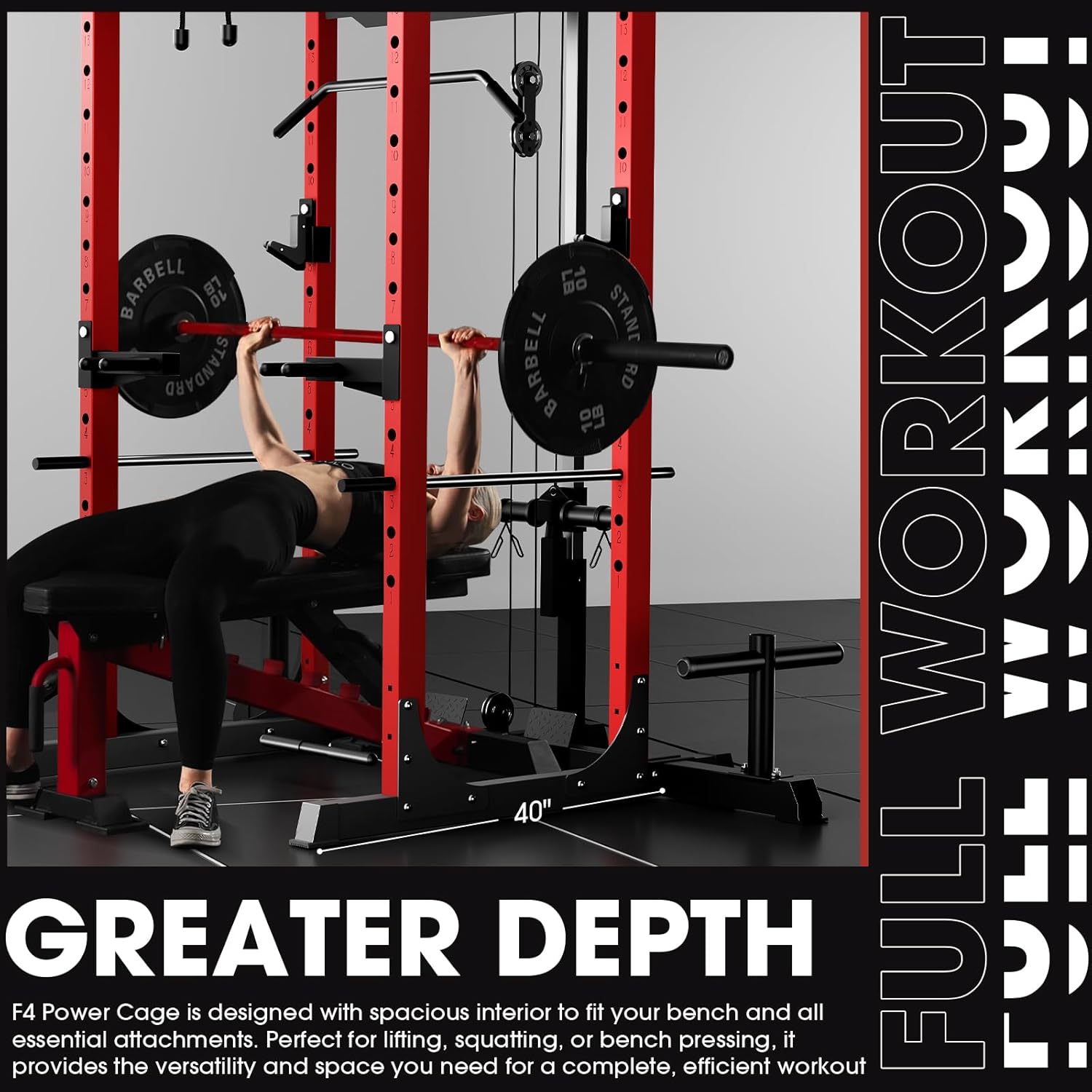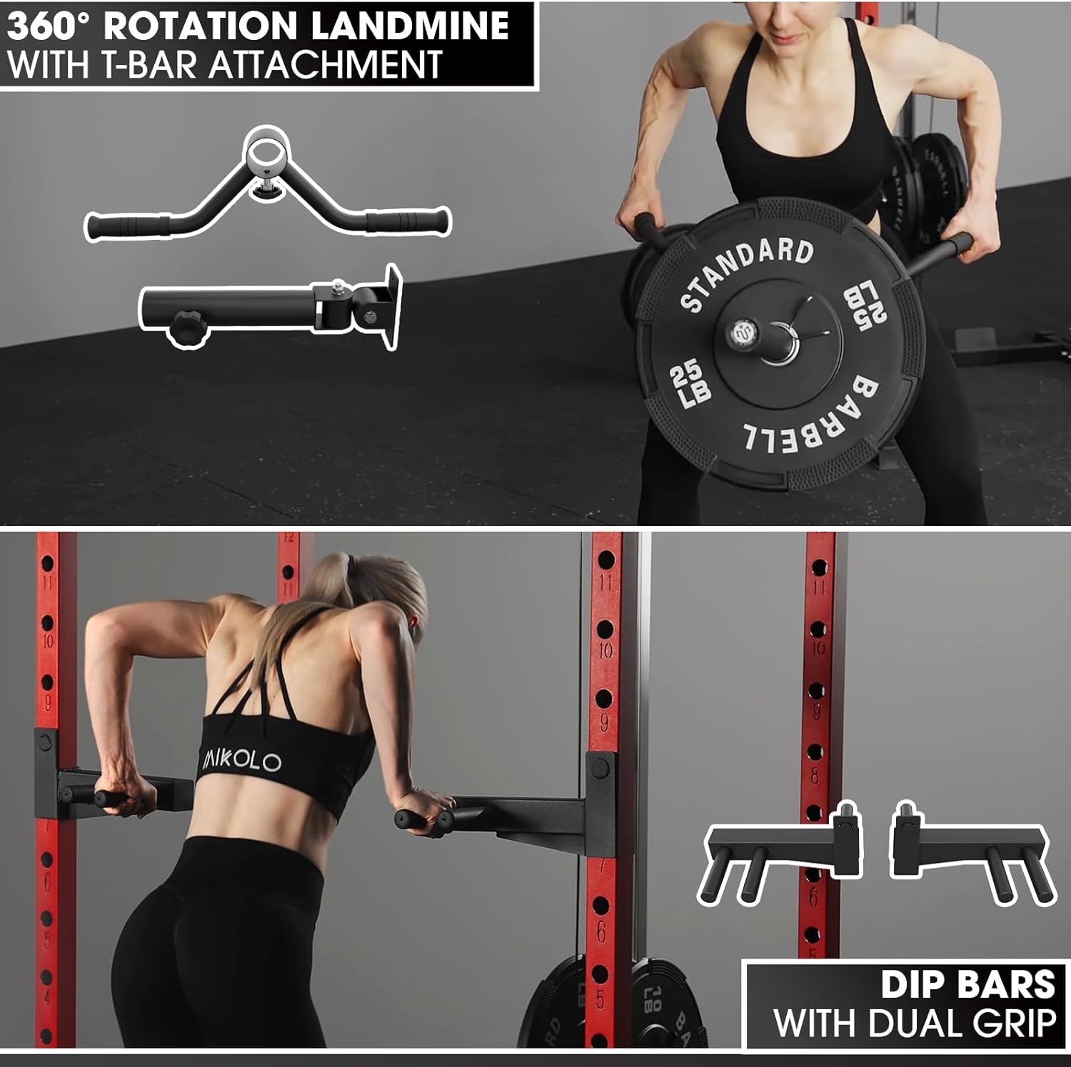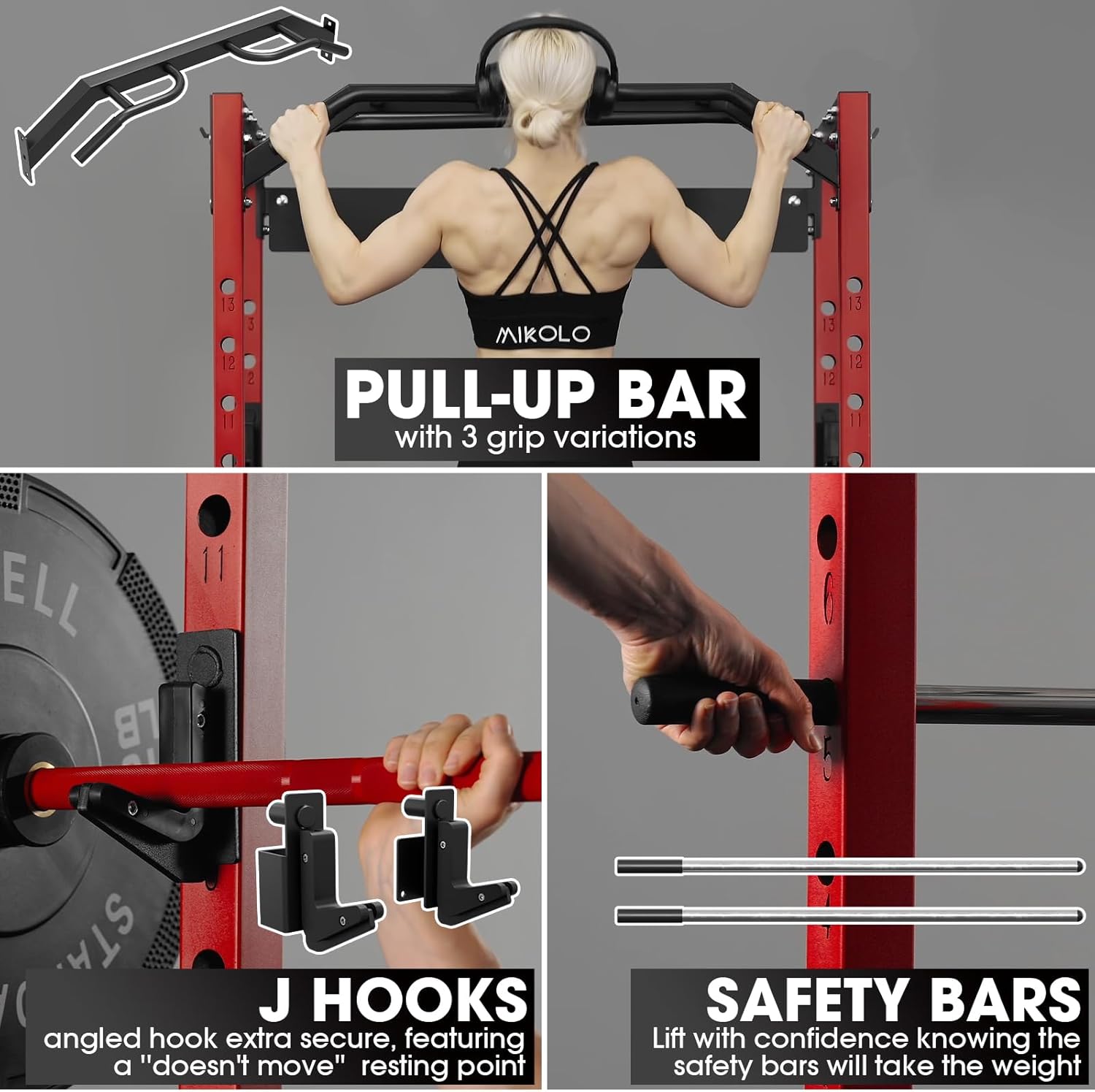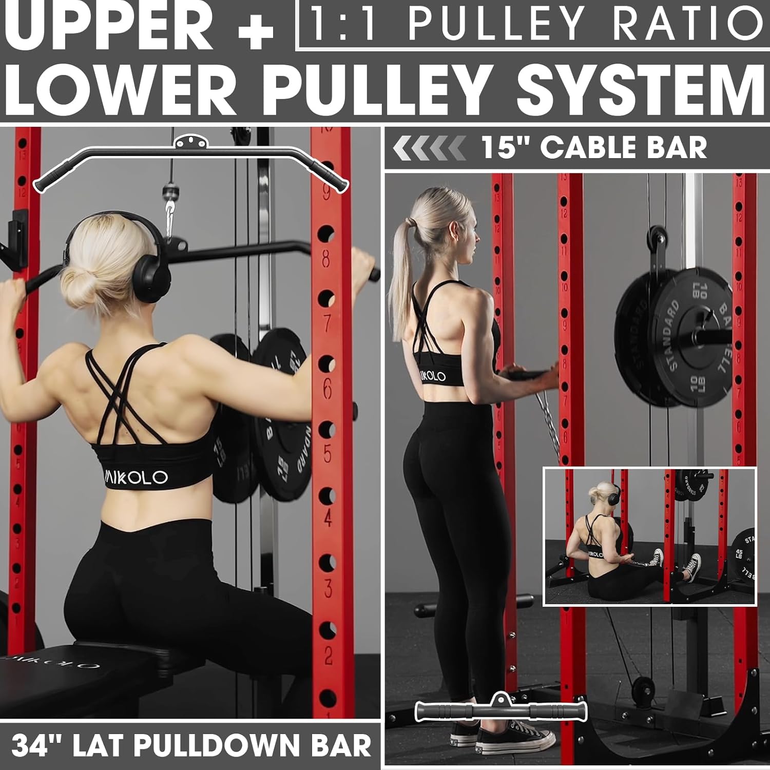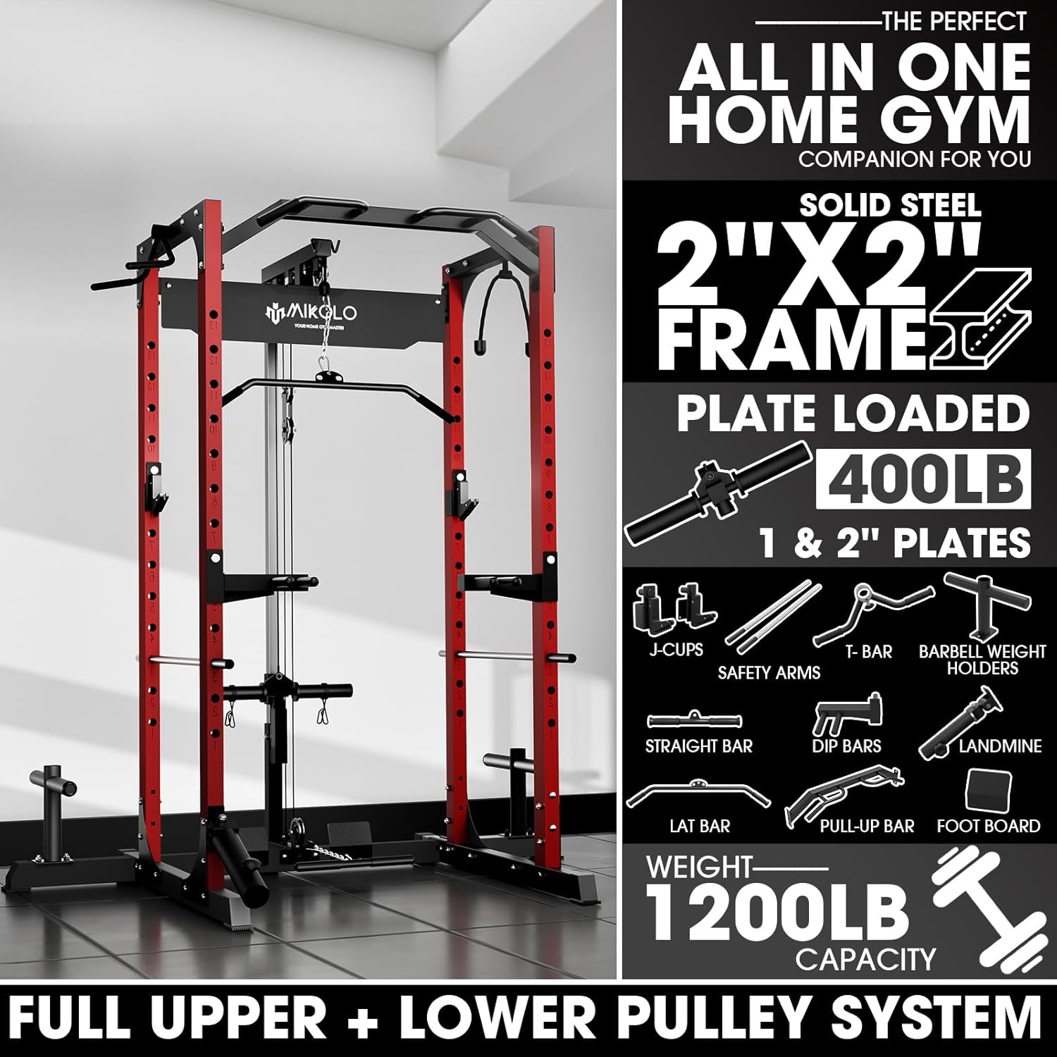 Mikolo Power Cage, Power Rack with LAT Pulldown, 1200 Pounds Capacity Workout Cage with More Training Attachments, Squat Rack for Home Gym, F4 Versions