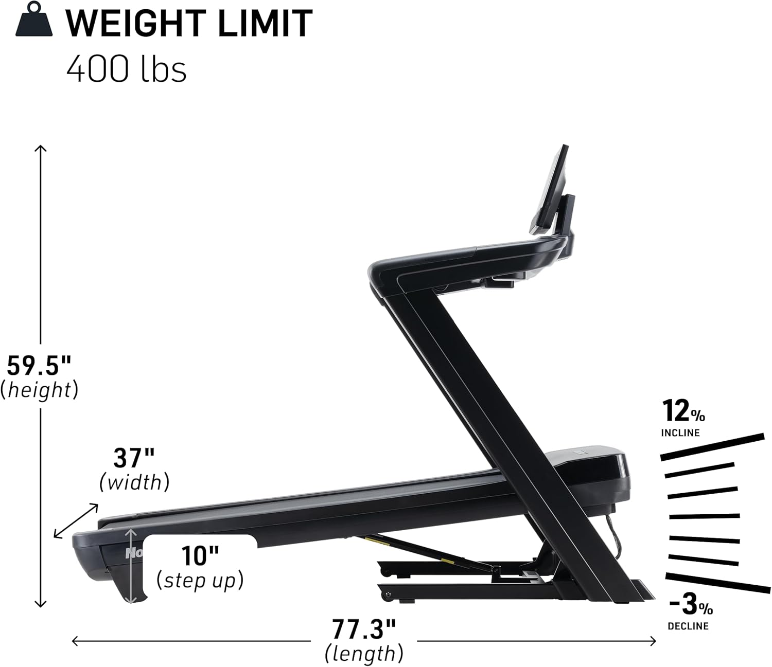 12% INCLINE TO -3% DECLINE – Train for a 5K, marathon, long hikes, and more. The large decline to incline range helps you target more muscle groups to train your body to walk, jog, hike, and run for any distance or elevation.