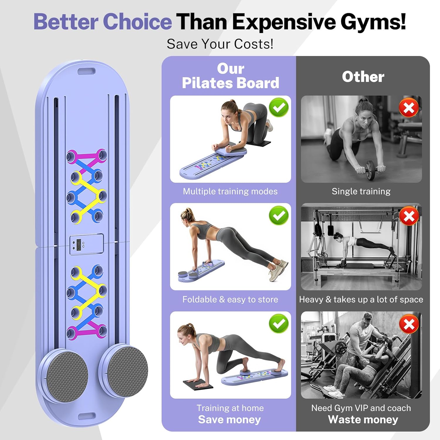 【Upgraded 7-in-1 Pilates Board】Compared with the traditional 5-in-1 pilates equipment, our pilates reformer set combines the functions of pilates board, resistance band, ab wheel, push-up handle, balance board and plank support, and can be combined into at least 7 forms, unlocking at least 15 exercise movements; helping you to effectively exercise your whole body muscles, achieve the effects of full body exercise, body shaping, fat loss, and body improvement.