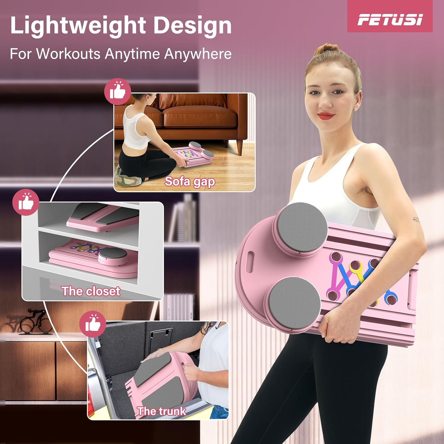 【Quick Folding Design】 The compact and foldable design makes this pilates board for home workout more space-saving and easy to carry. Whether you are at home, in the office, in the gym, outdoors or traveling, you can easily perform full-body core training.